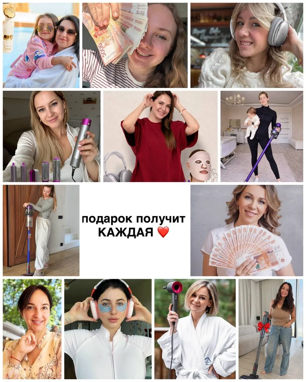 Сейчас в самом разгаре наш с девочками-блогерами аттракцион подарков. Вчера дарили пылесос, фен, массажёр, часы, стайлер и наличные. Сегодня тоже будут подарочки🎁