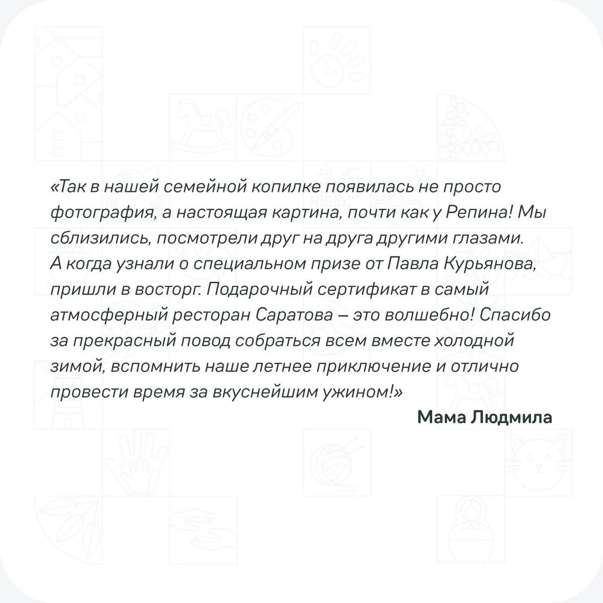 Желаем, чтобы ваш семейный альбом пополнялся только счастливыми снимками, а место силы семьи становилось с каждым годом только теплее и уютнее ❤️