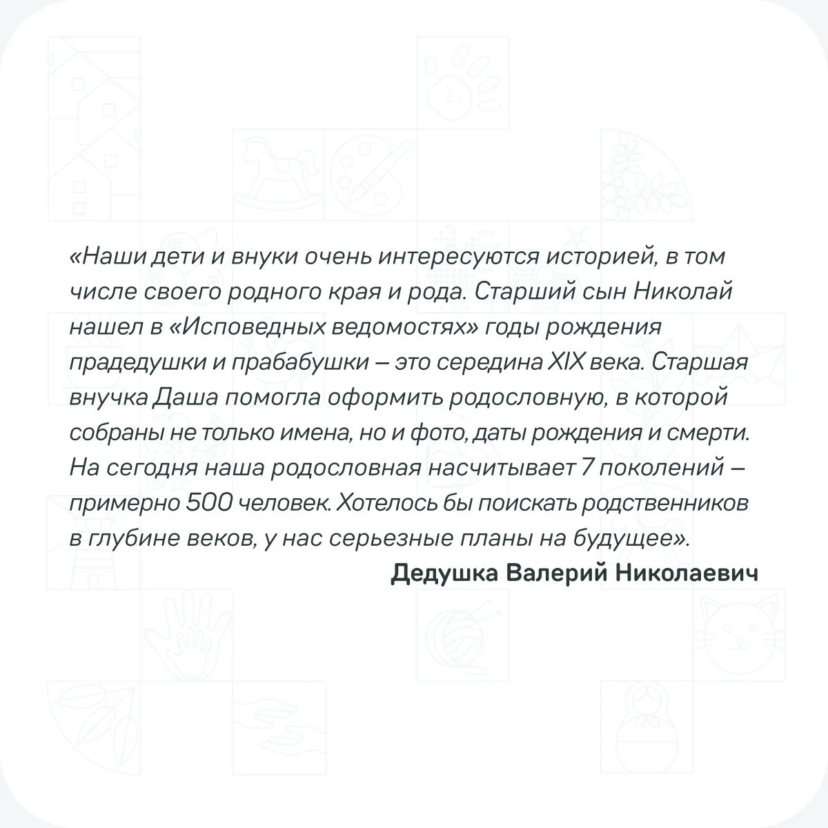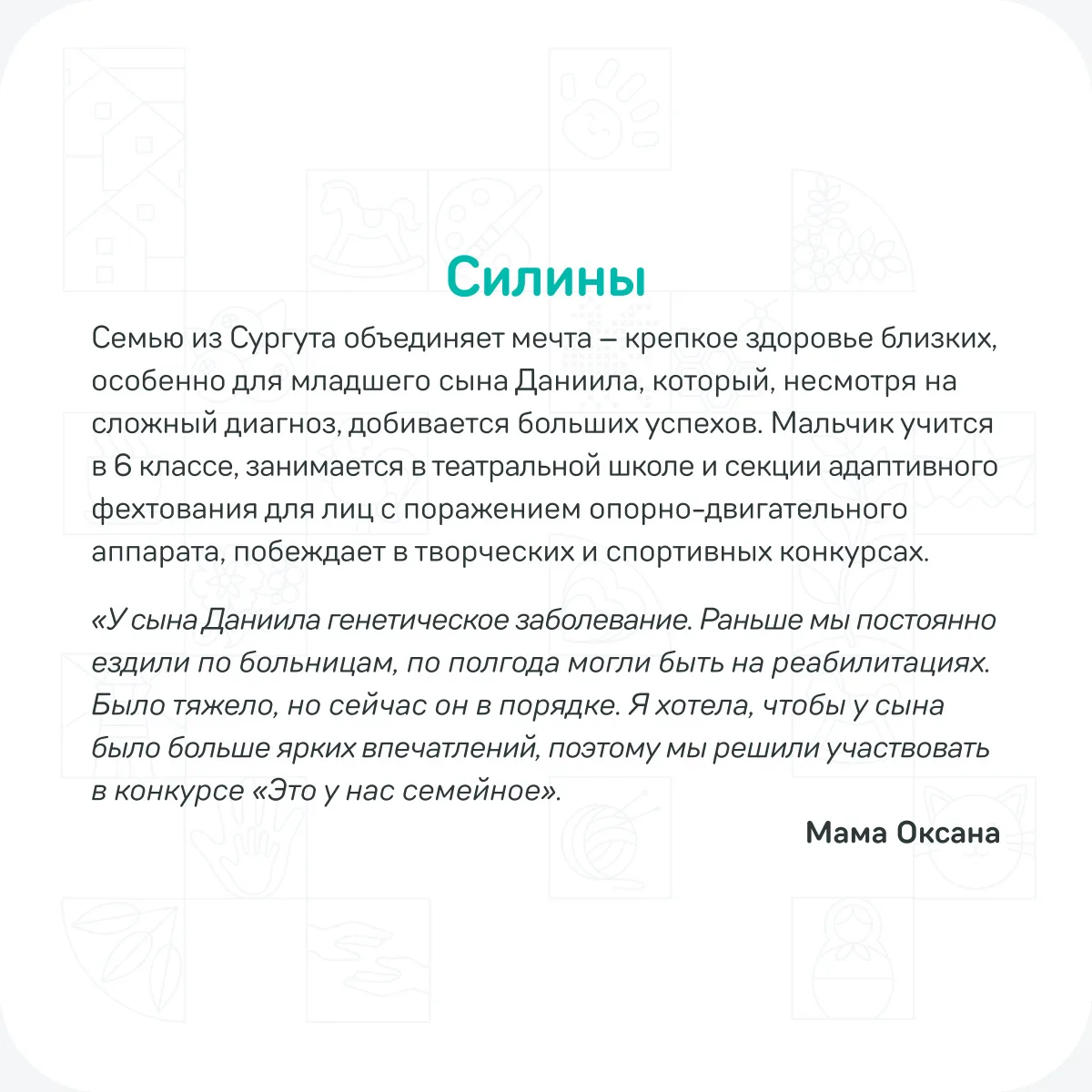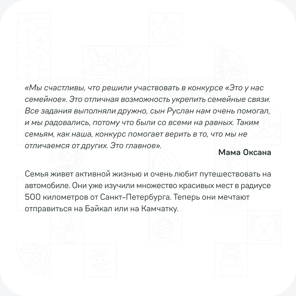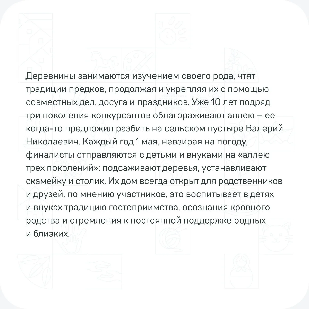 Узнайте, как несколько тысяч российских семей видят этот процесс и какой вклад в историю России они совершают — в сегодняшних карточках! 💫