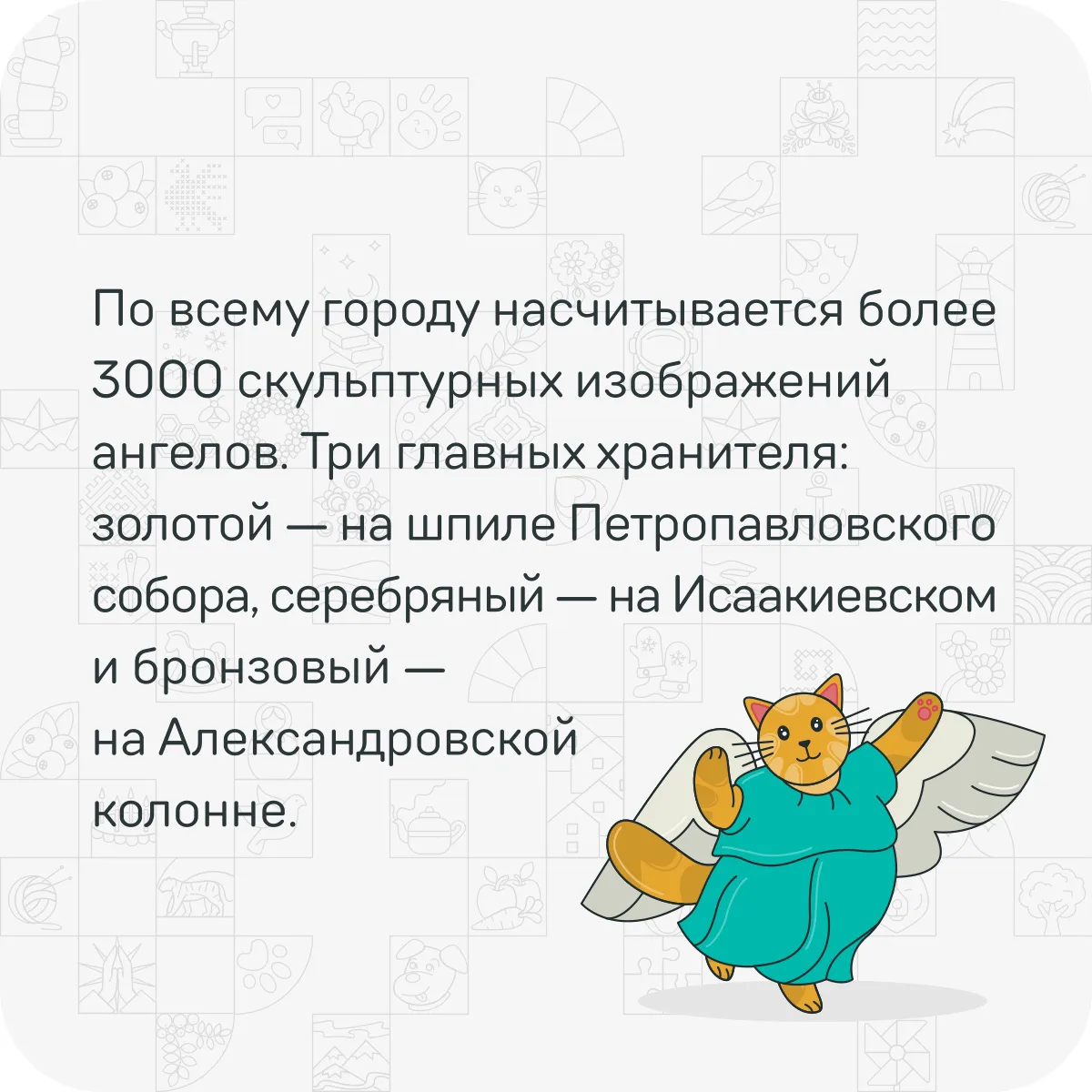 Санкт-Петербург — город, где каждый уголок хранит удивительную историю. Знаете ли вы, где расположены его три главных ангела-хранителя? А какой факт о Петербурге занесен в Книгу рекордов Гиннеса?