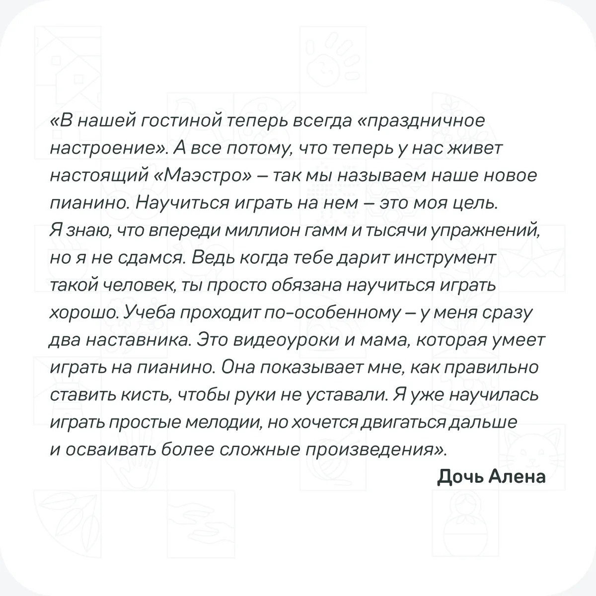Композитора покорила семья Пущаевых из Оренбурга. Дмитрий выделил их семейную команду и в подарок отправил цифровое пианино. Теперь в доме конкурсантов живет «Маэстро», а у детей появилась новая цель и источник семейной радости 🎹