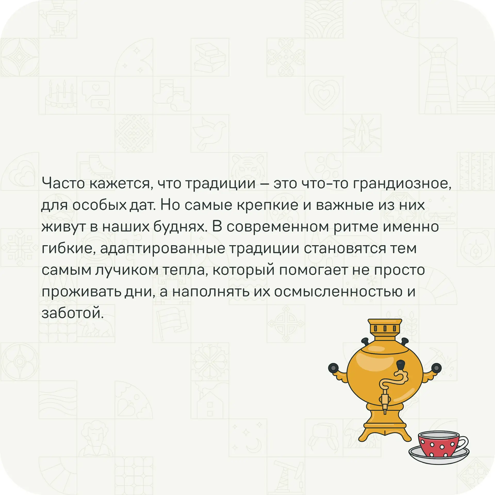 Что объединяет семьи России, кроме любви и общих воспоминаний? Есть нечто глубинное, что мы все чувствуем и бережем, — наш культурный код 👏