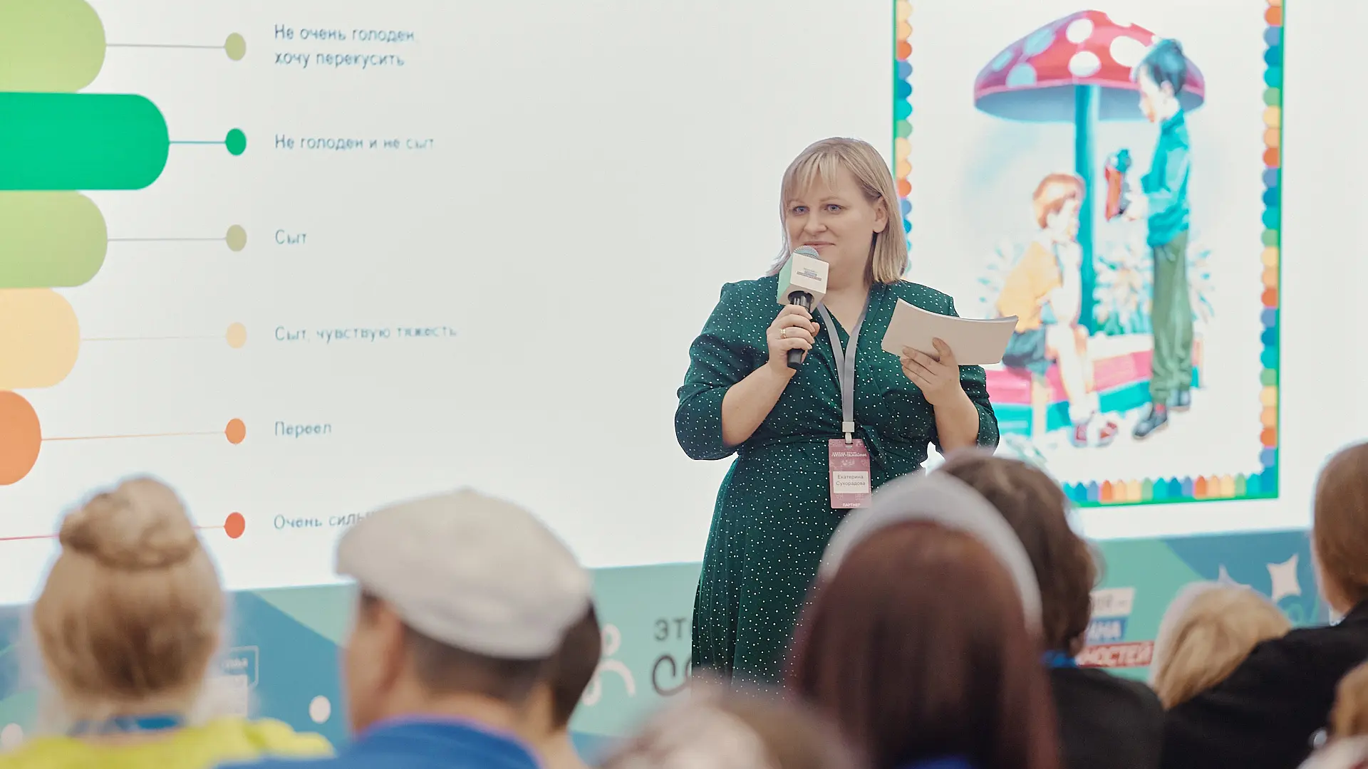Четырехдневный полуфинал начался с заботы о питании. Екатерина Сухорадова — советник директора по воспитанию и взаимодействию с детскими общественными объединениями школы № 453 имени Сергея Жукова и представитель партнера конкурса «Это у нас семейное» X5 Group — рассказала командам, как распознавать настоящий голод и развеяла мифы о ЗОЖ!