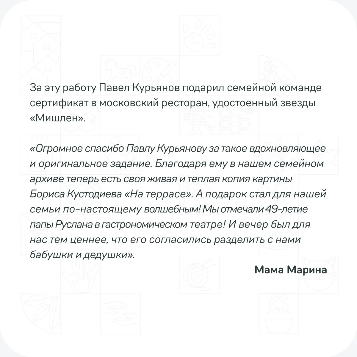 Знакомимся с историями и работами семей в карточках 👆🏼
