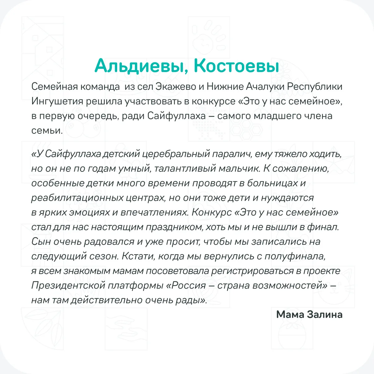 В карточках истории о том, как сплоченность, взаимопомощь и общие мечты помогают двигаться вперед и радоваться каждому дню! 🤗