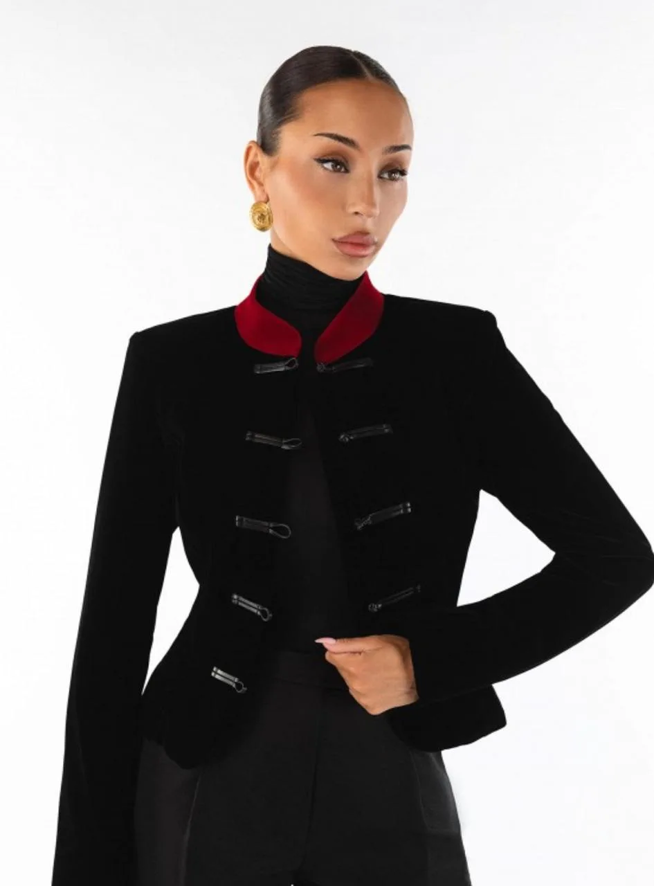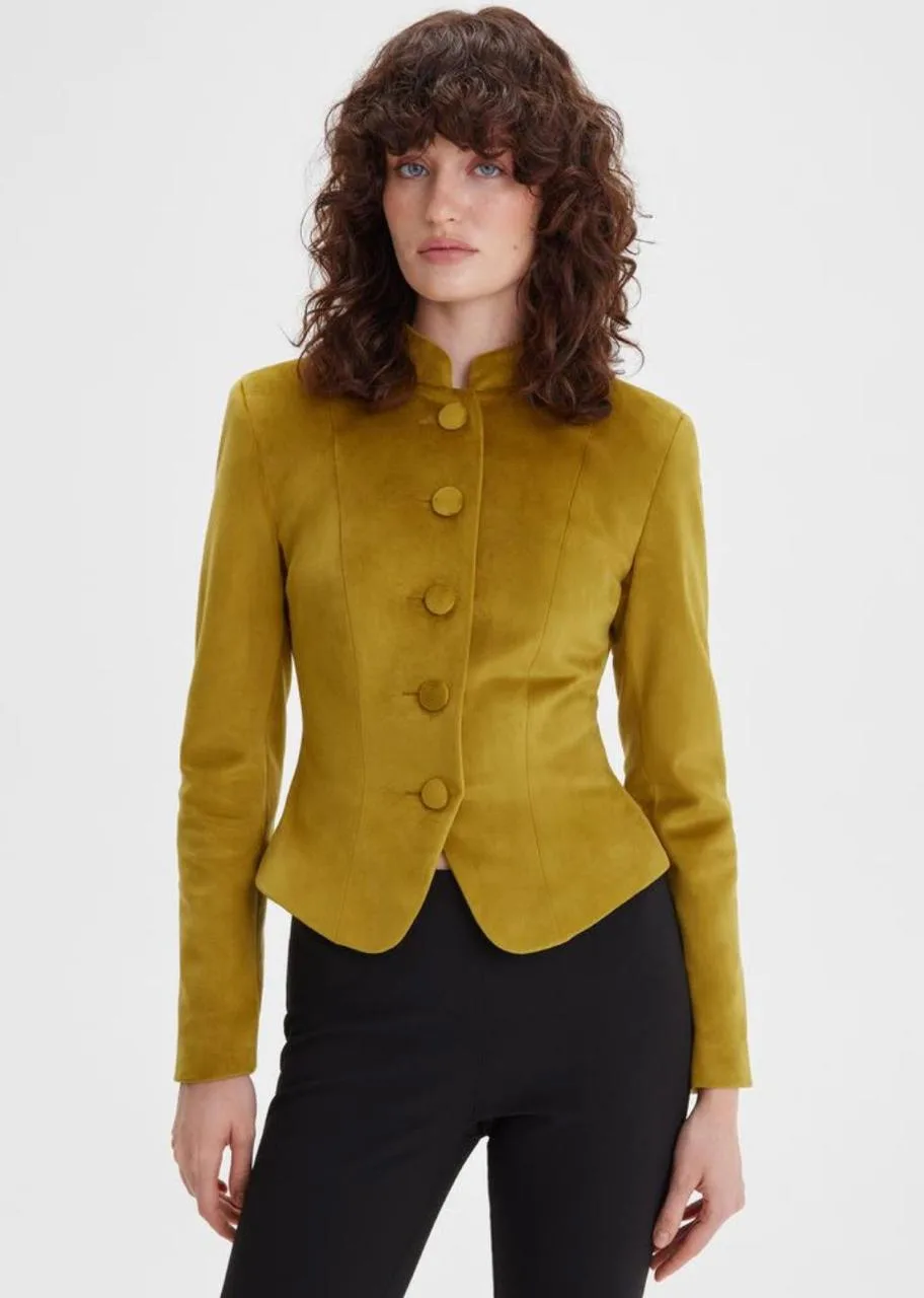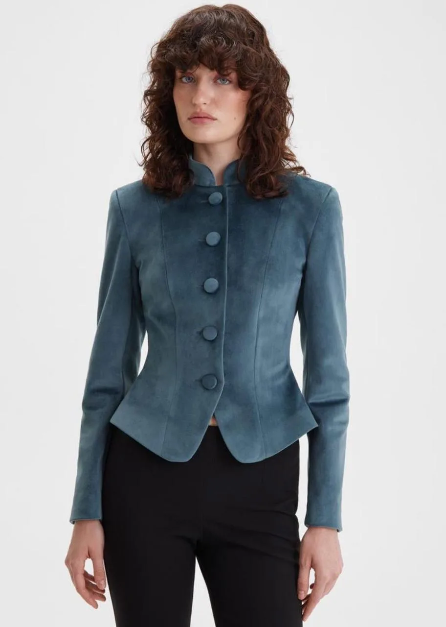 • жакет Бриджит - удлиненный, приталенный с бархатными кармашками и пуговицами