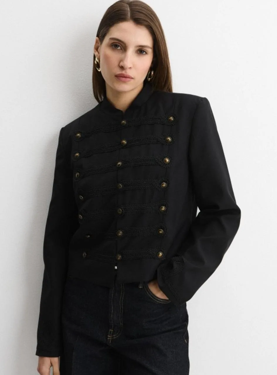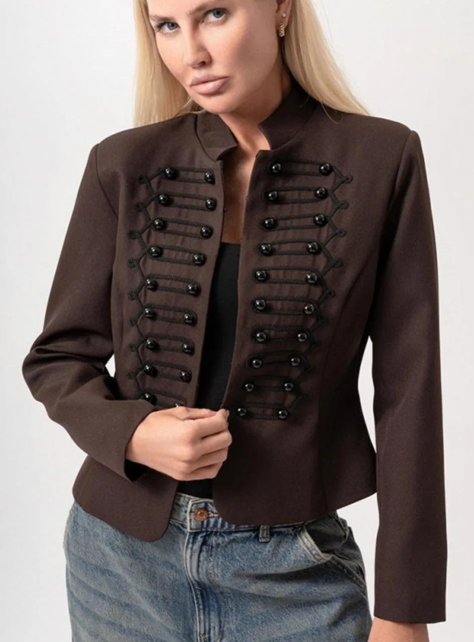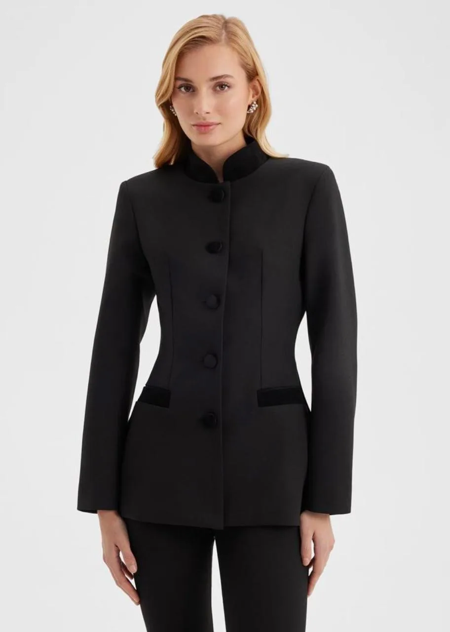 • жакет Бриджит - удлиненный, приталенный с бархатными кармашками и пуговицами