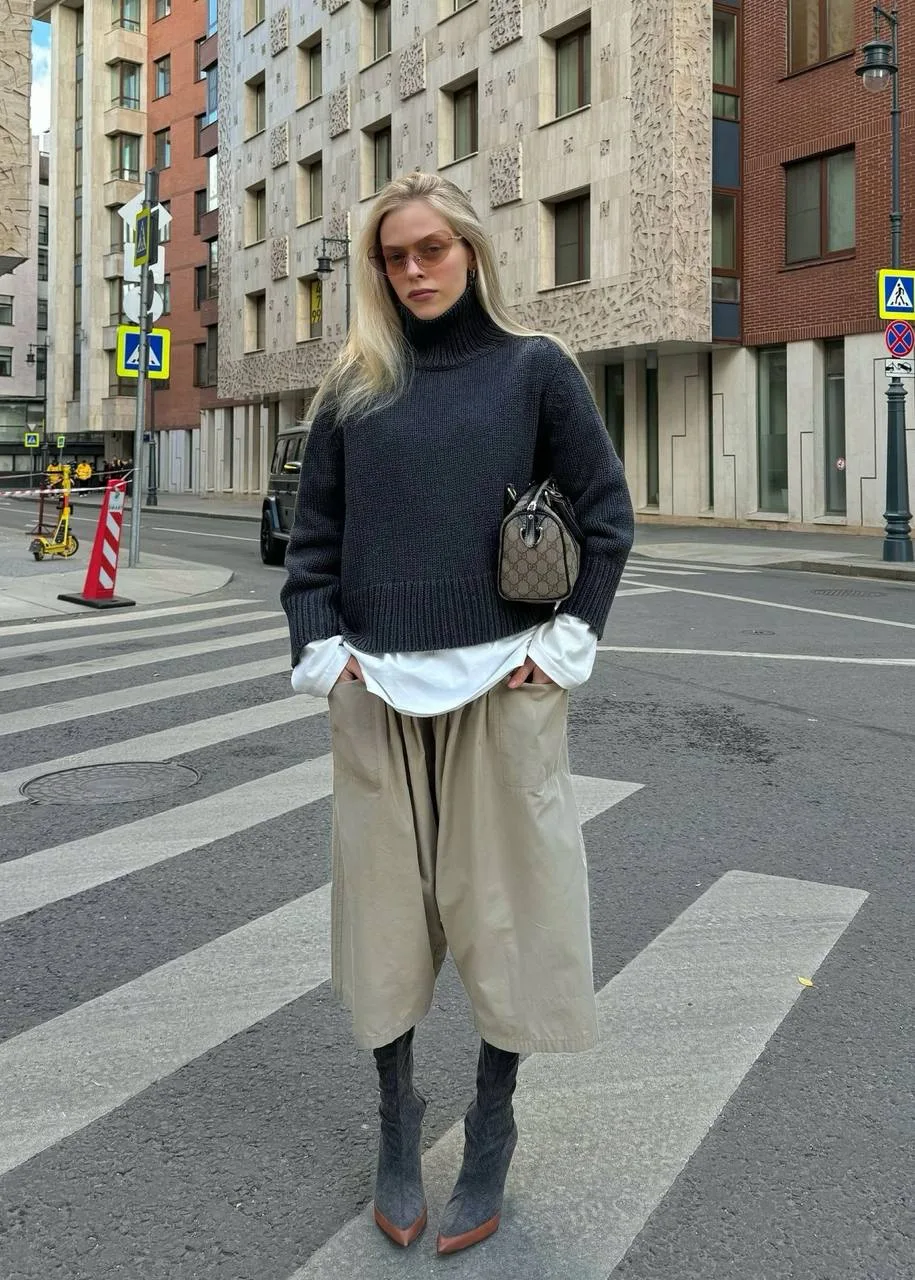 И, кстати, не кюлоты делают ваши ноги короткими, а неправильная работа с плечевыми изделиями. Посему рекомендую не бояться кюлотов и разбавлять свой гардероб таким вариантом поясного изделия ❤️