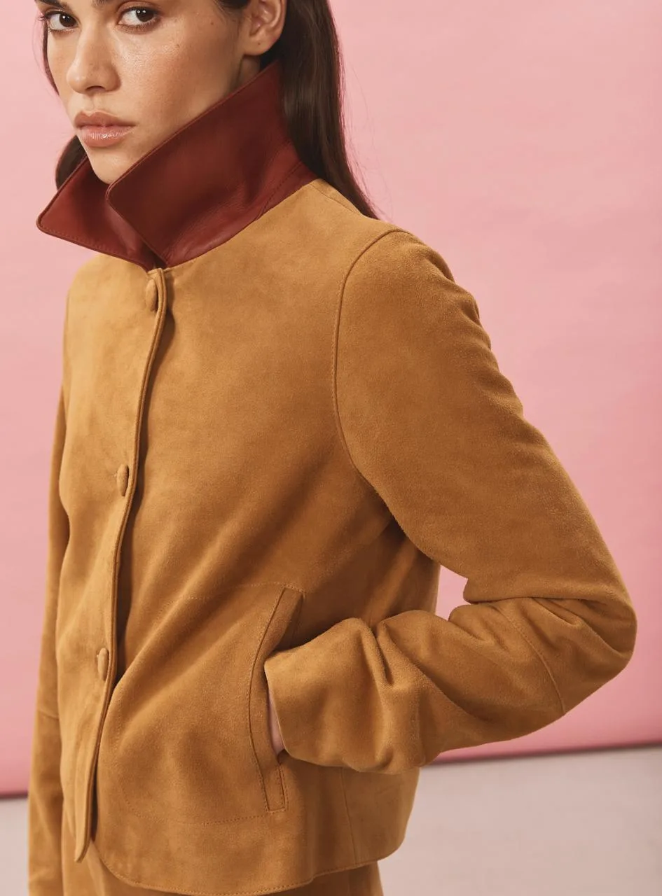• жакет Лорейн горчица и темно-бирюзовый - отличается воротничком стойкой