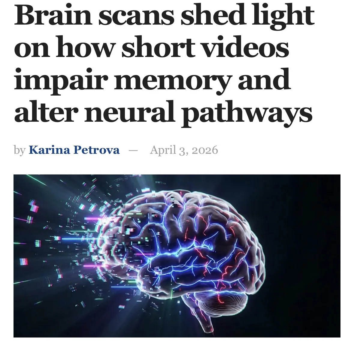 Короткие ролики убивают память и внимание — доказали новые исследования с МРТ. Если человек постоянно смотрит нарезки по 15 секунд, его мозг перестаёт нормально усваивать информацию: она не связывается между нейронами и не откладывается в голове.