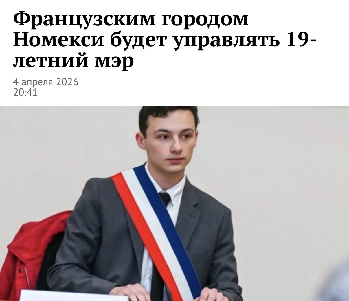 Парень выиграл выборы в первом туре с перевесом в 5 голосов, и сейчас он самый молодой мэр Франции.