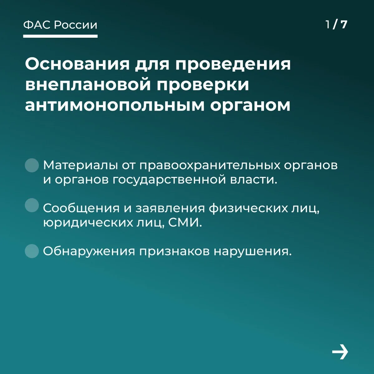 ✍🏻 Подробнее о внеплановых выездных проверках, которые направлены на получение доказательств заключения и реализации антиконкурентных соглашений, в том числе картелей, в наших карточках.