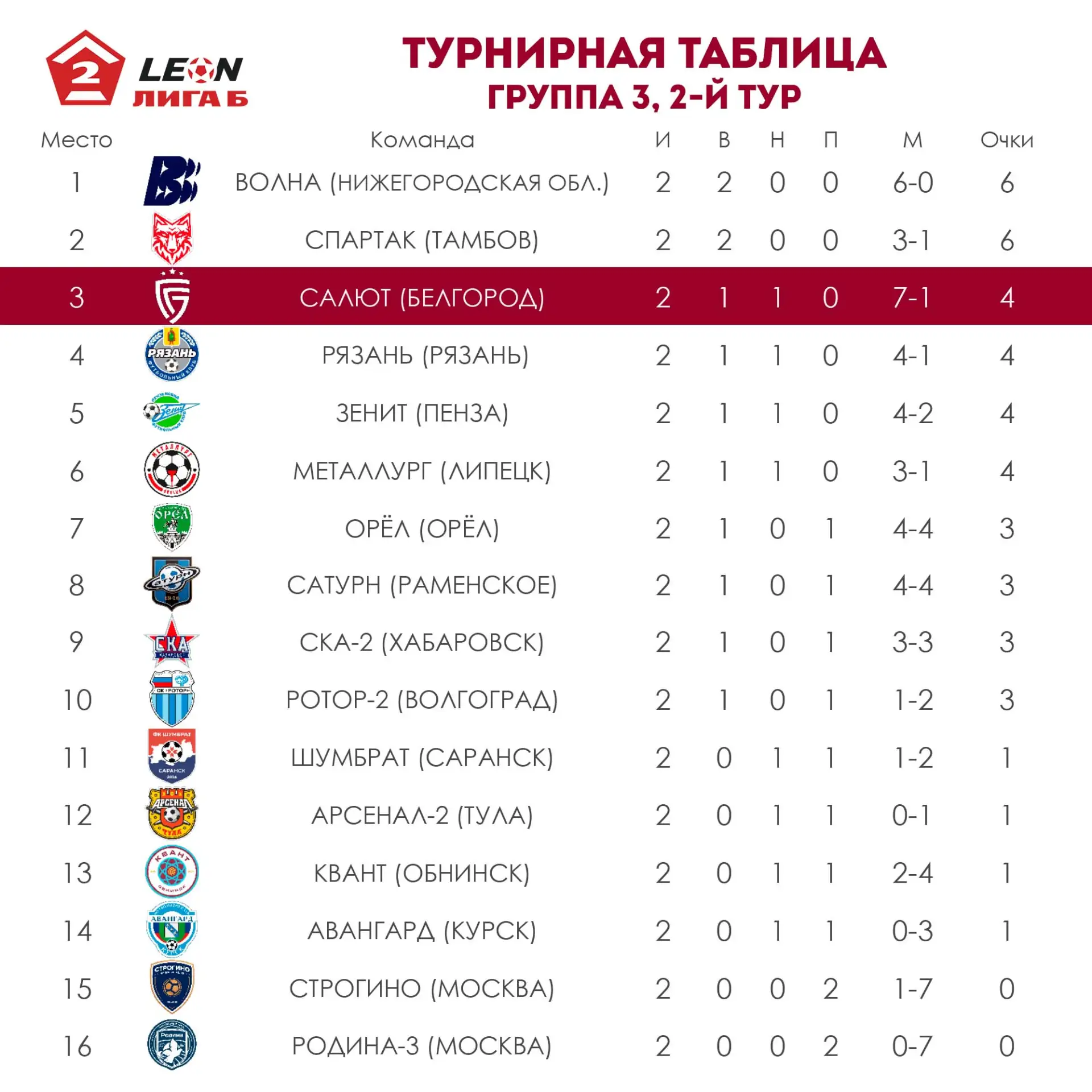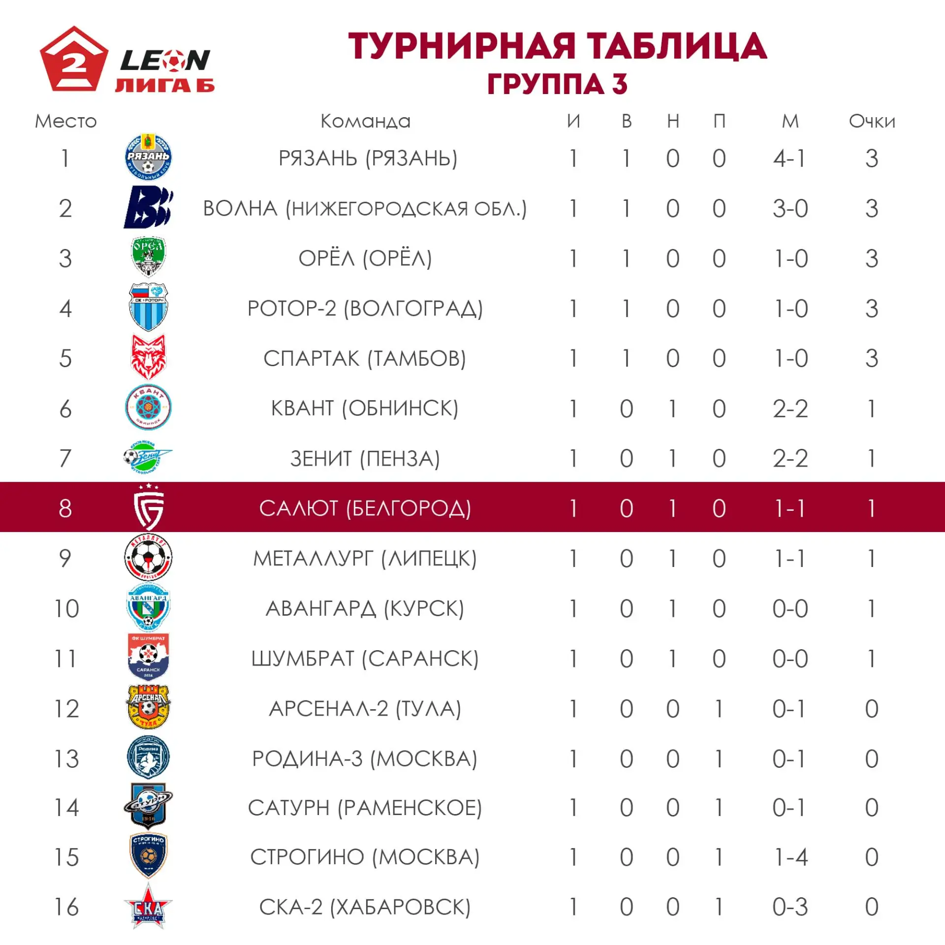 📊 Итоги 1-го тура группы 3 LEON-Первенства Второй лиги Б.