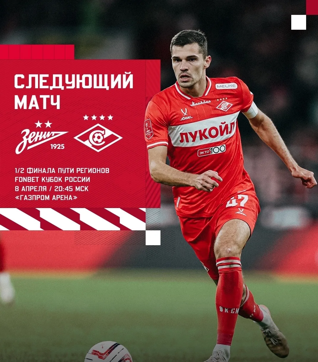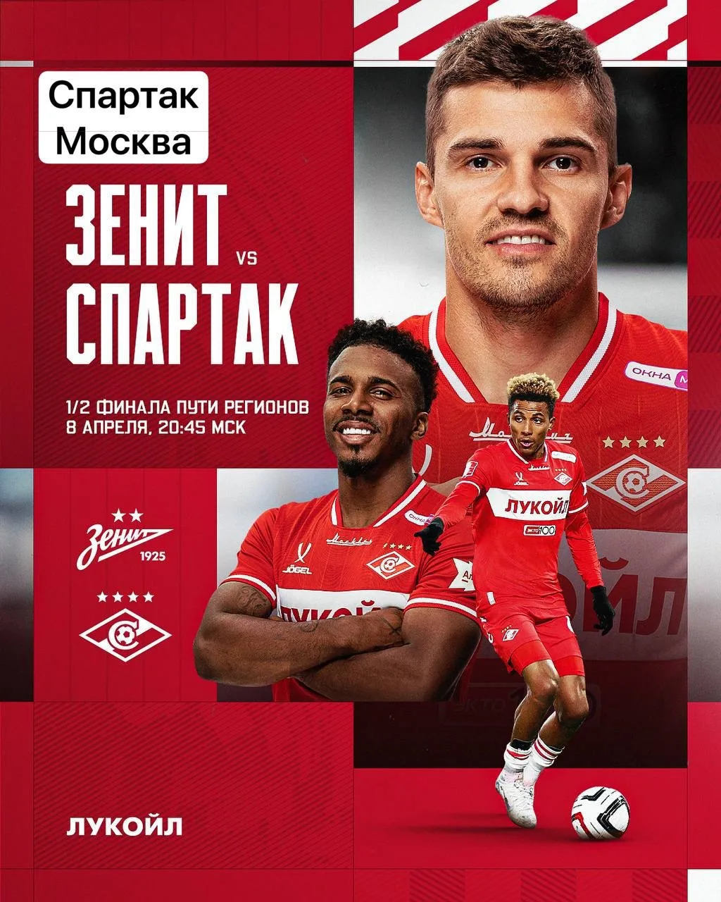 Финальный матч Пути регионов Кубка России «Спартак» – ЦСКА, согласно регламенту и сетке турнира, пройдет на Лукойл Арене. Предварительные даты проведения игры – 5-7 мая.
