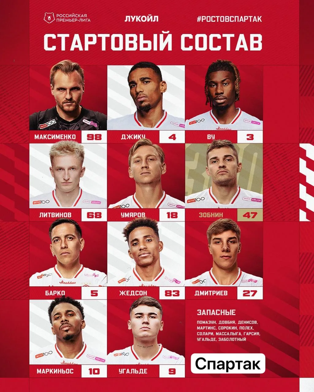 Стартовый состав «Спартака» на игру с «Ростовом»