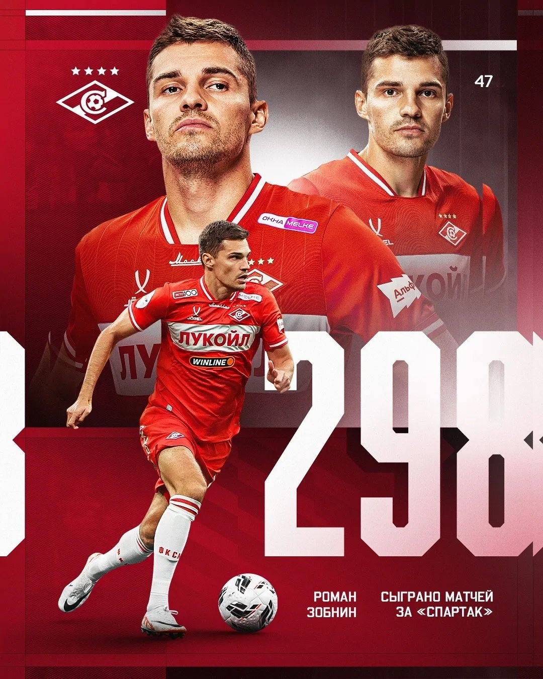 Легендарная отметка в 3️⃣0️⃣0️⃣ матчей за «Спартак» была покорена Романом Зобниным! ♥️🤍