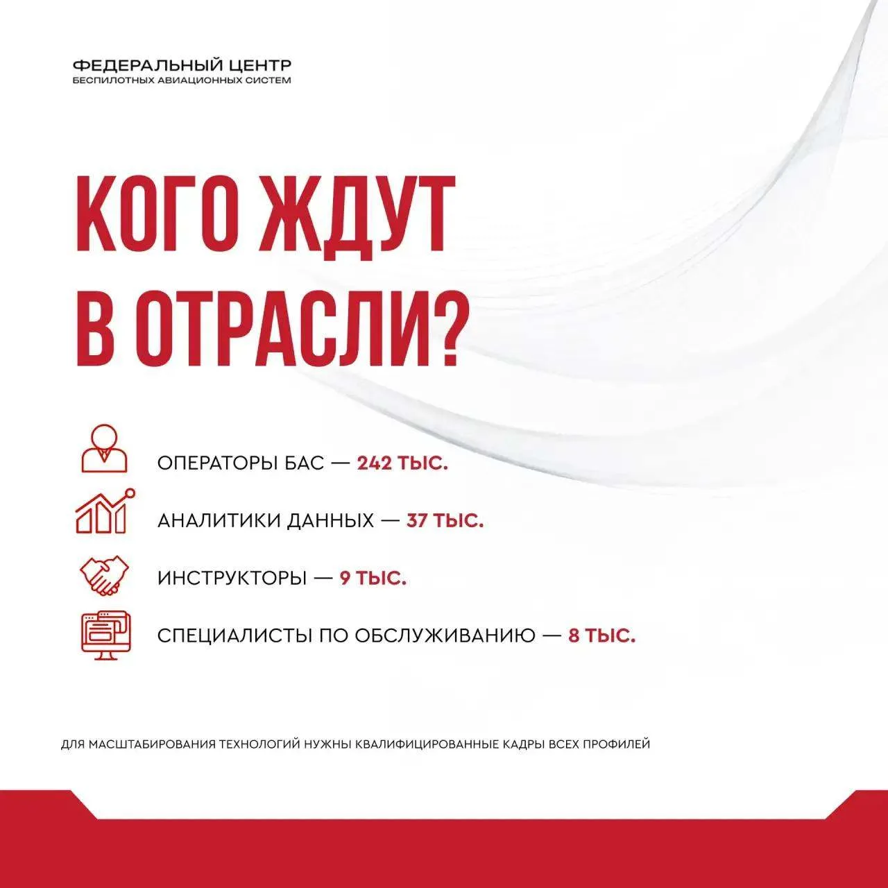 Для масштабирования БАС-технологий важно обеспечить отрасль не просто достаточным количеством кадров, а квалифицированными специалистами соответствующего профиля: инструкторы, операторы, специалисты по техническому обслуживанию, аналитики данных.