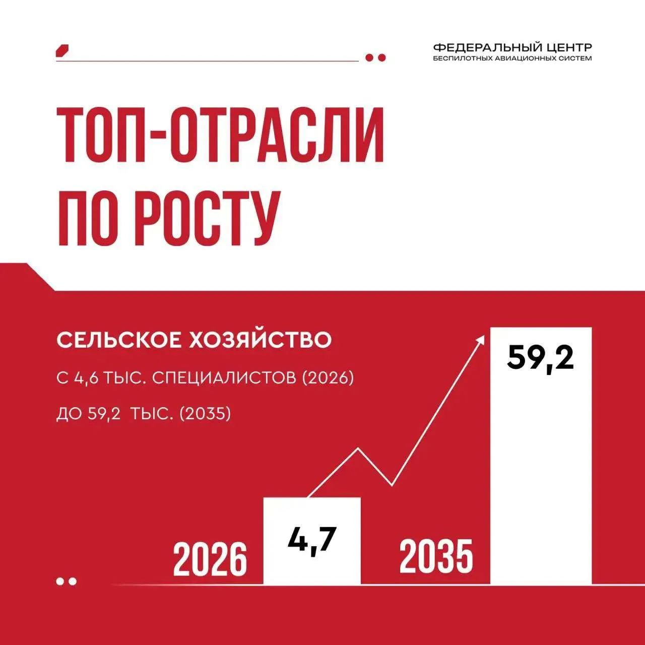 📌 Сельское хозяйство: с 4,7 тыс. специалистов (2026) до 59 тыс. (2035).