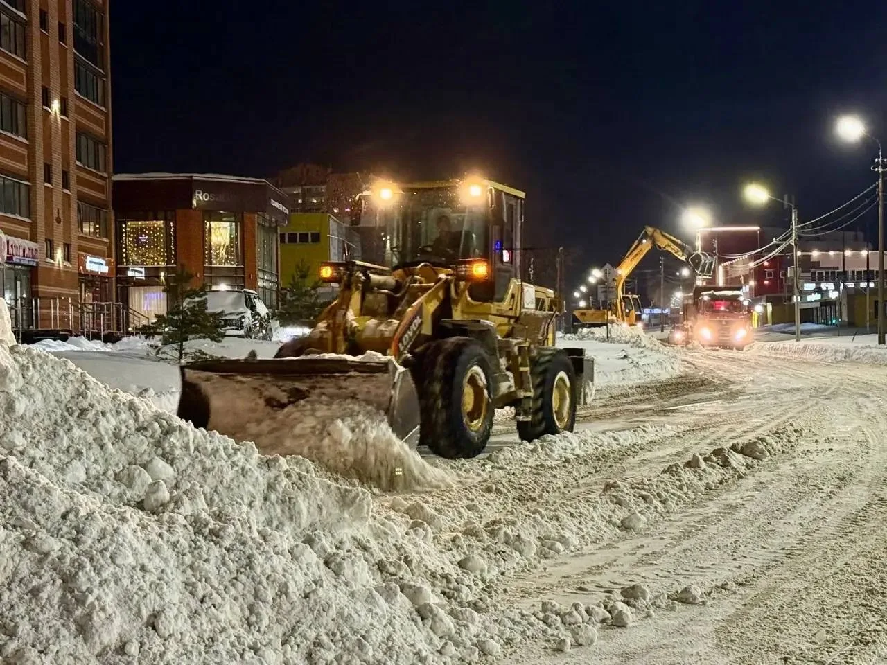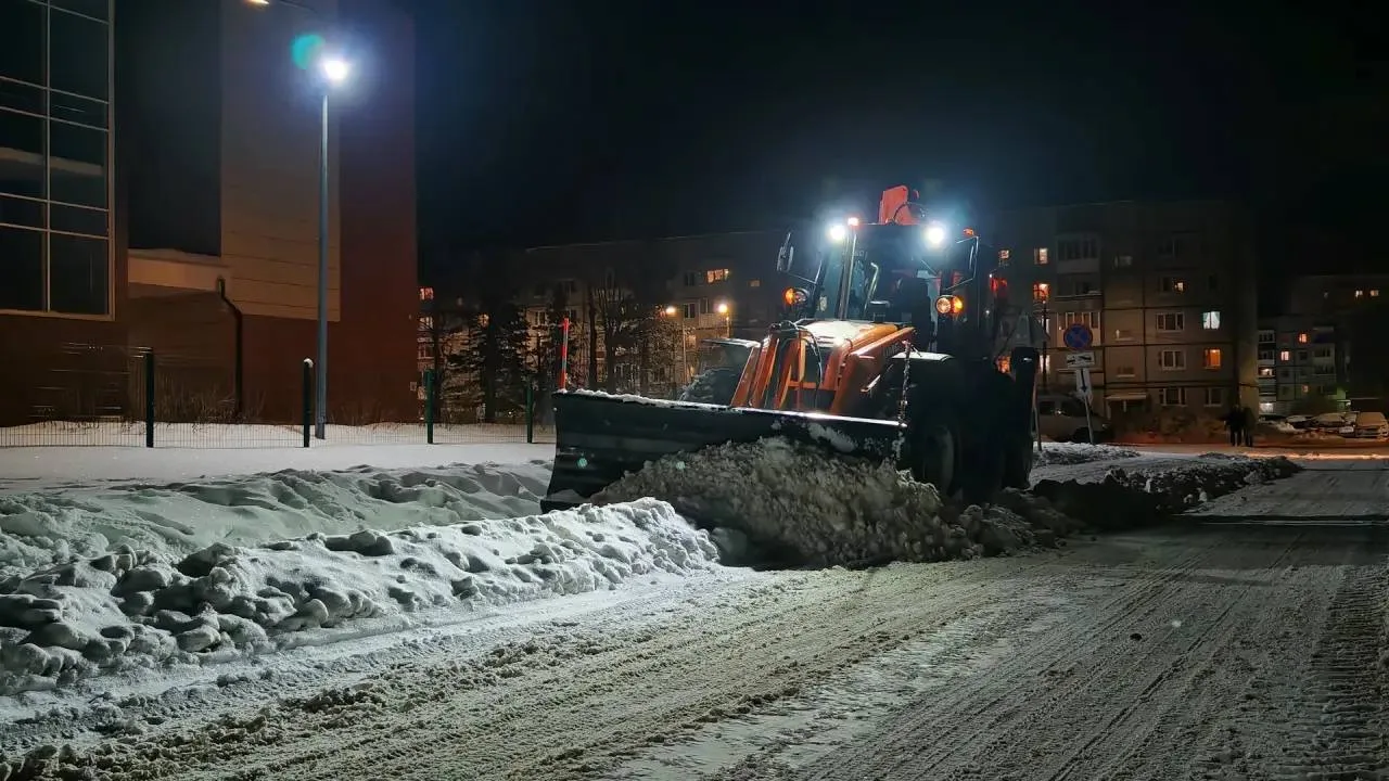 Снегоуборка продолжается в ночную смену. На улицах до утра будут работать 79 единиц специальной техники: