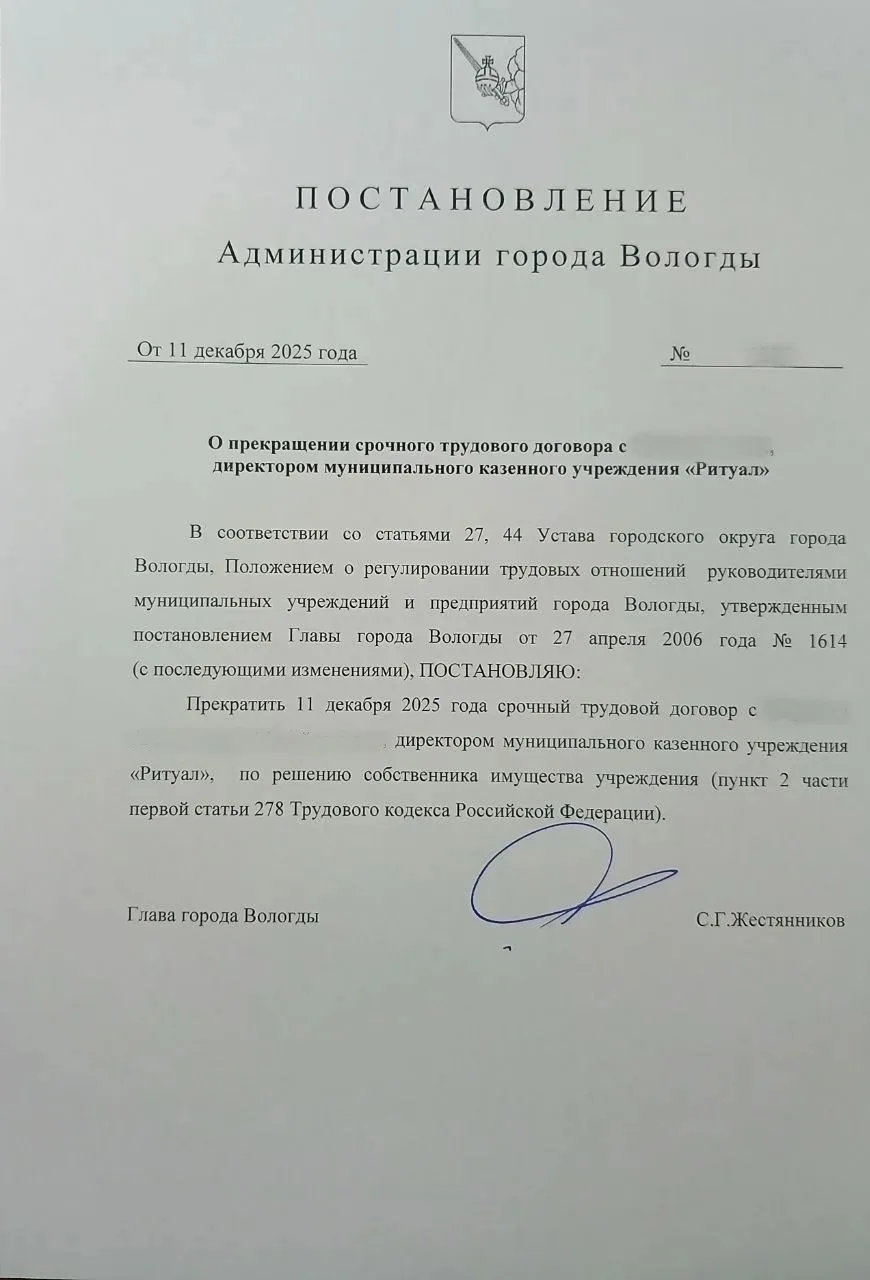 Два директора МКУ «Ритуал» и МБУ «Ритуал-спецслужба» уволены сегодня. Новые руководители заступят на должности уже завтра.