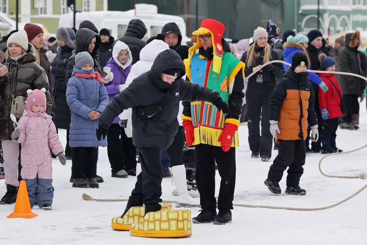 «Масленичные потехи» собрали самых азартных и смелых: бегали в лаптях, бросали валенки, соревновались в эстафетах.