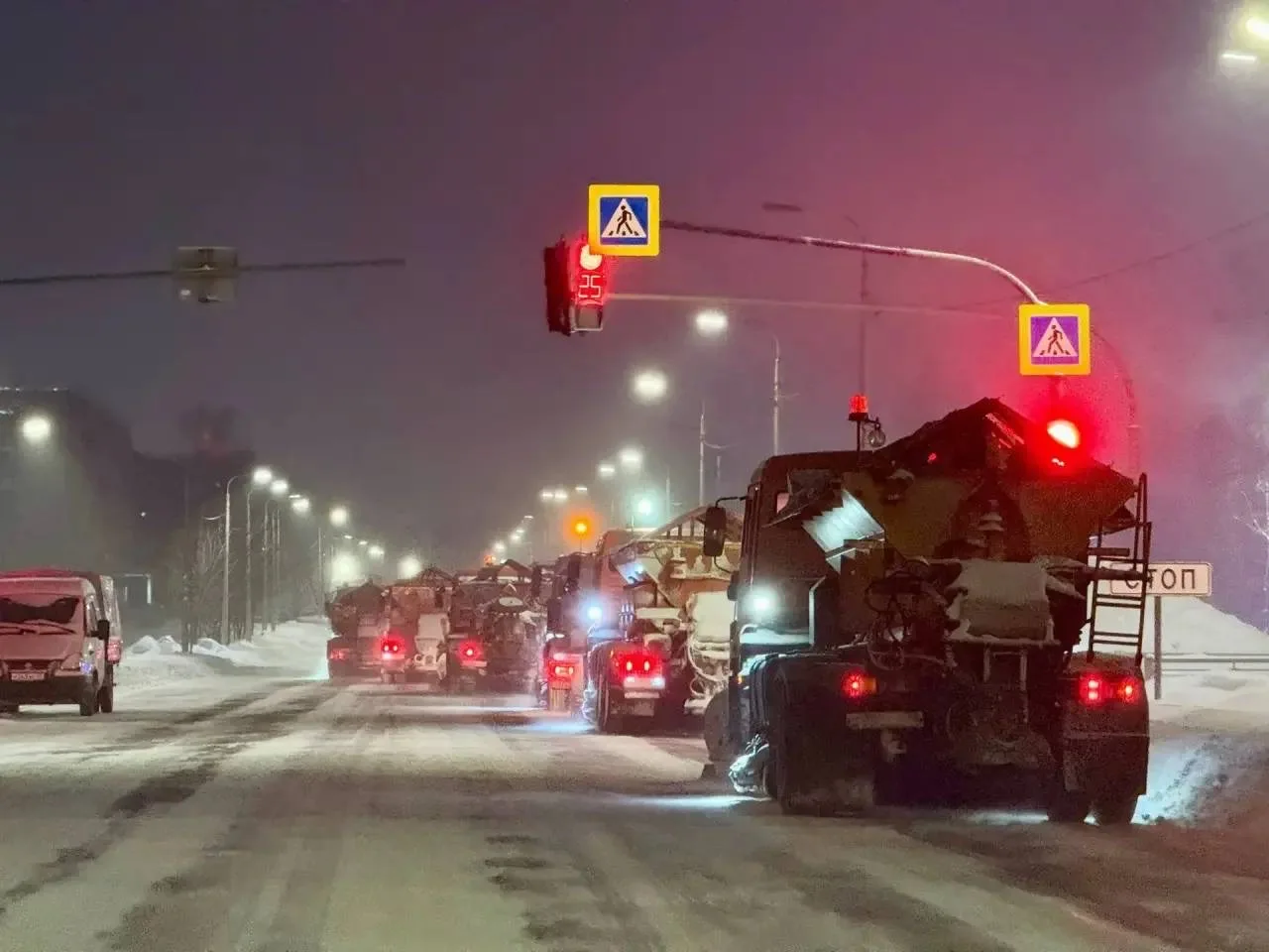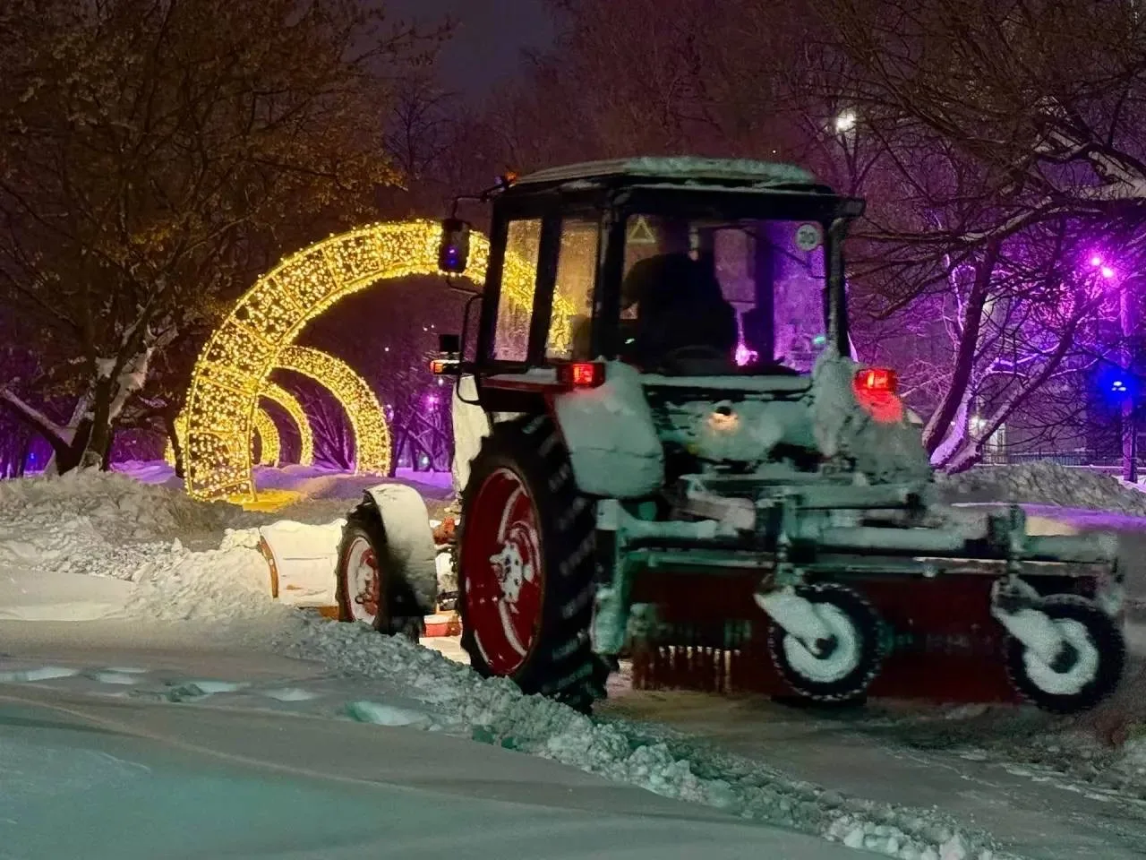 В ночь лично проверил организацию уборки. Работало 102 единицы техники, в том числе 32 КДМ, 27 МТЗ, 22 самосвала, погрузчики, грейдеры.
