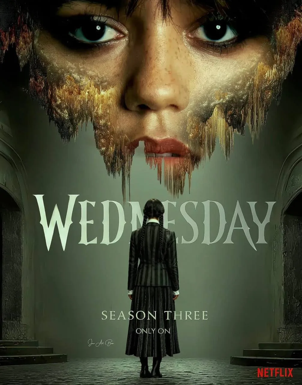 Фанаты ждут с нетерпением: новый арт-постер третьего сезона «Уэнсдэй», съёмки которого стартуют в ближайшее время!