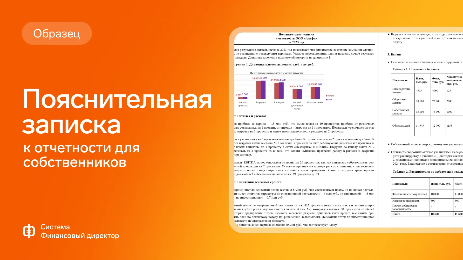 Эксперты Системы разработали образец записки к отчетности для собственников. Форма записки лаконична – на паре страниц ключевые показатели и выводы.