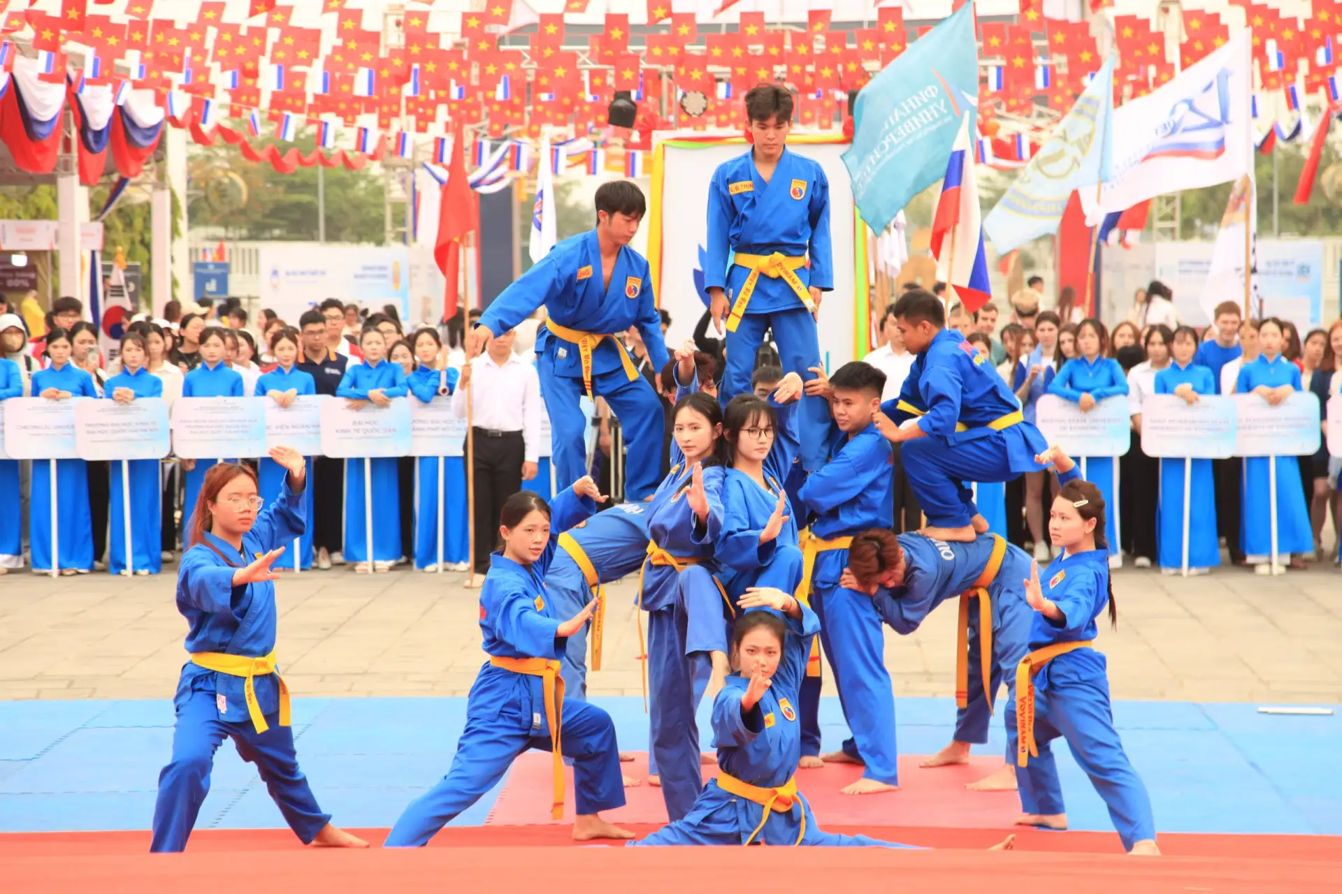 Разминку для участников провел многократный чемпион мира по сумо Владимир Чайка, а затем все вместе вышли на символический забег вокруг главного корпуса вуза