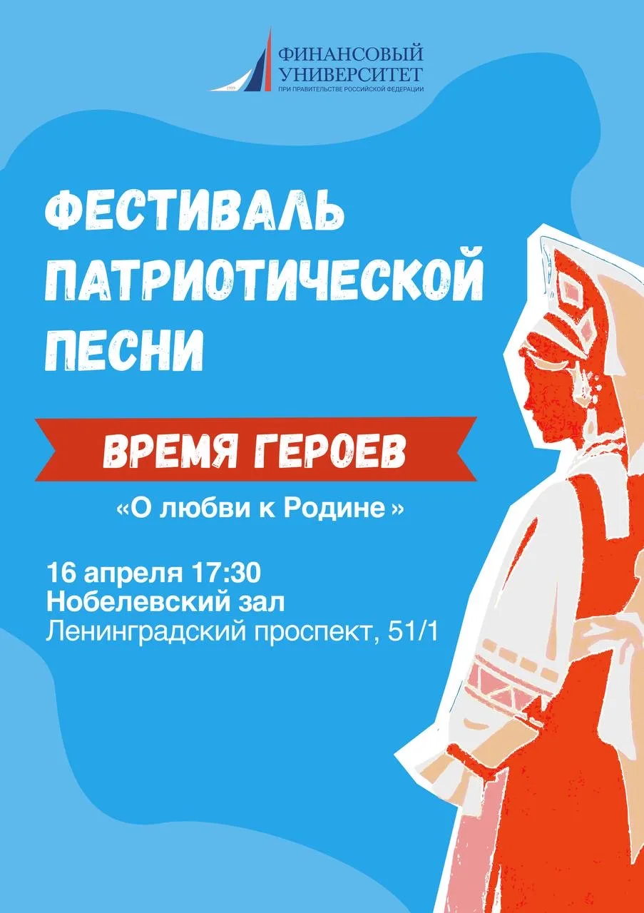 16 апреля на сцене Нобелевского зала состоится наш традиционный Фестиваль патриотической песни «Время героев. О любви к Родине» 🇷🇺