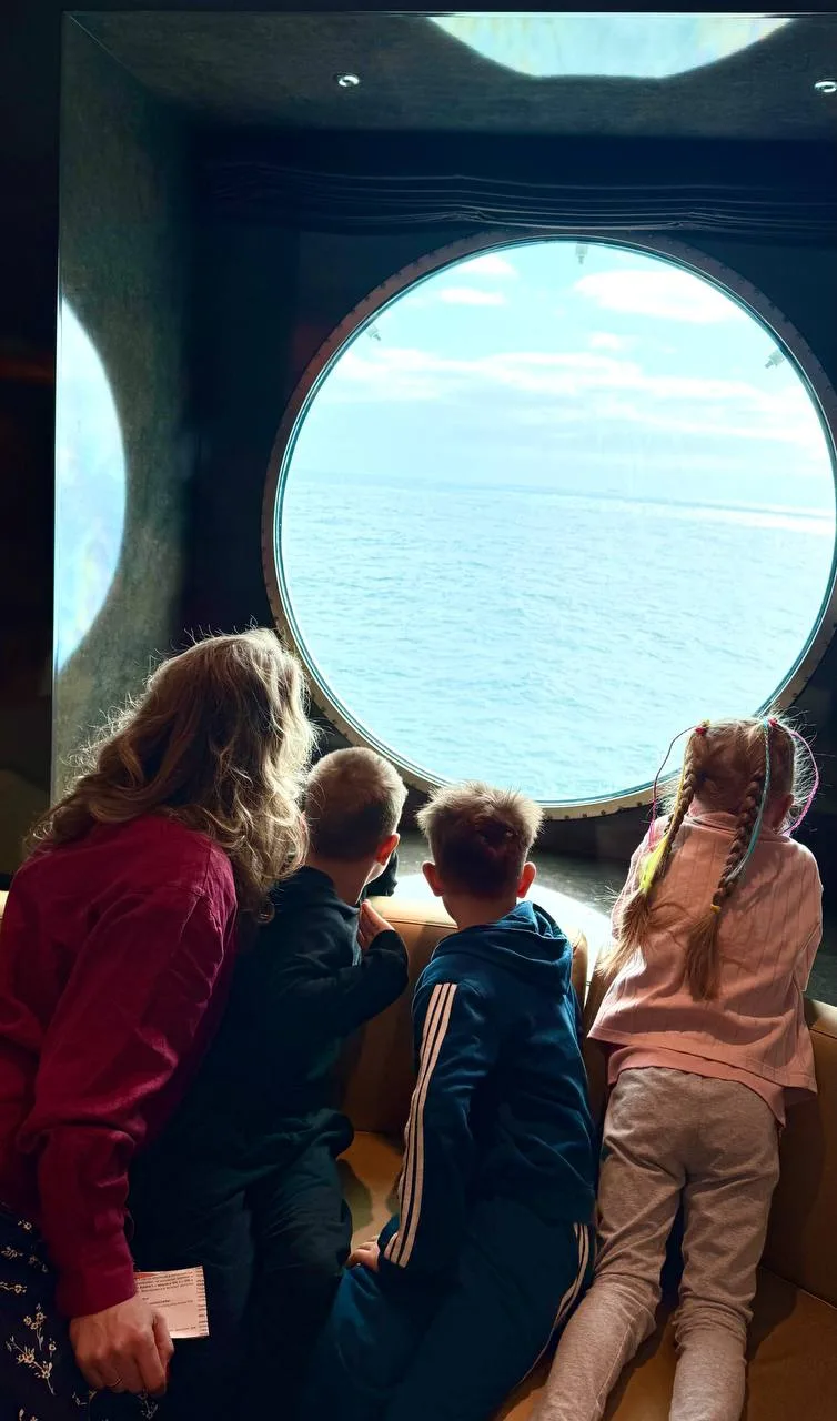 До лайнера ехали примерно 30-40 минут. Для наших детей это была вечность, наполненная вопросами: «А какой он? Сколько этажей? Какого цвета? Что там будет?!» 🤯