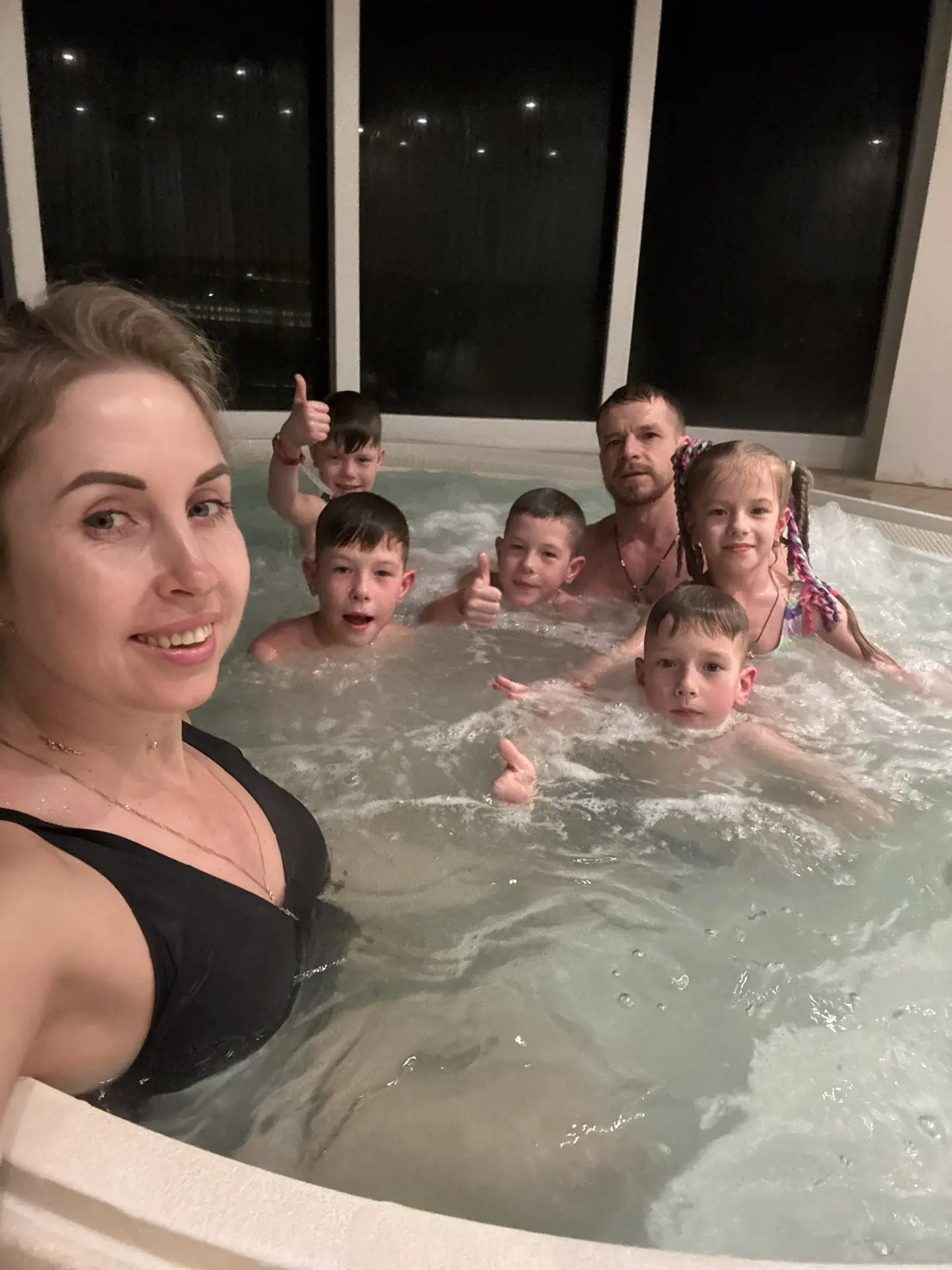 Завершили день волшебно: джакузи + бассейн. Вода, звёзды, дети счастливы, родители расслаблены — идеально! 😉