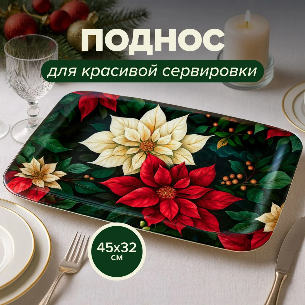 🍽 Поднос с бортиком выдерживает температуру от -20 до +100 °С. Размер: 45х32 см