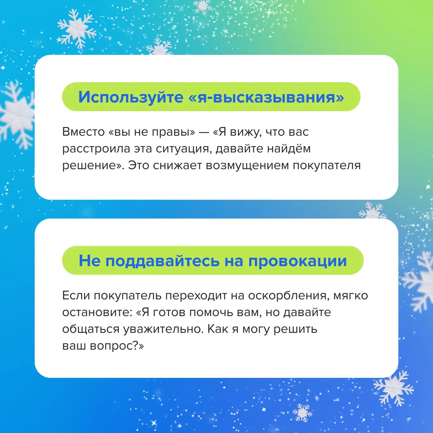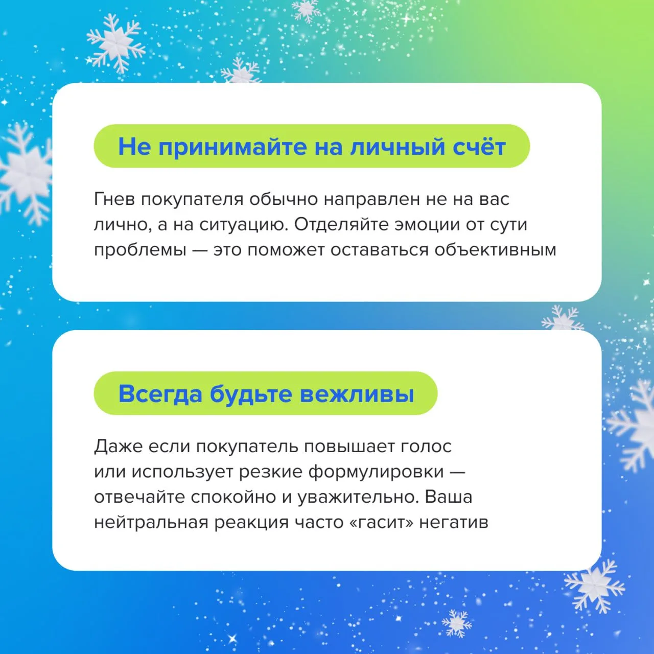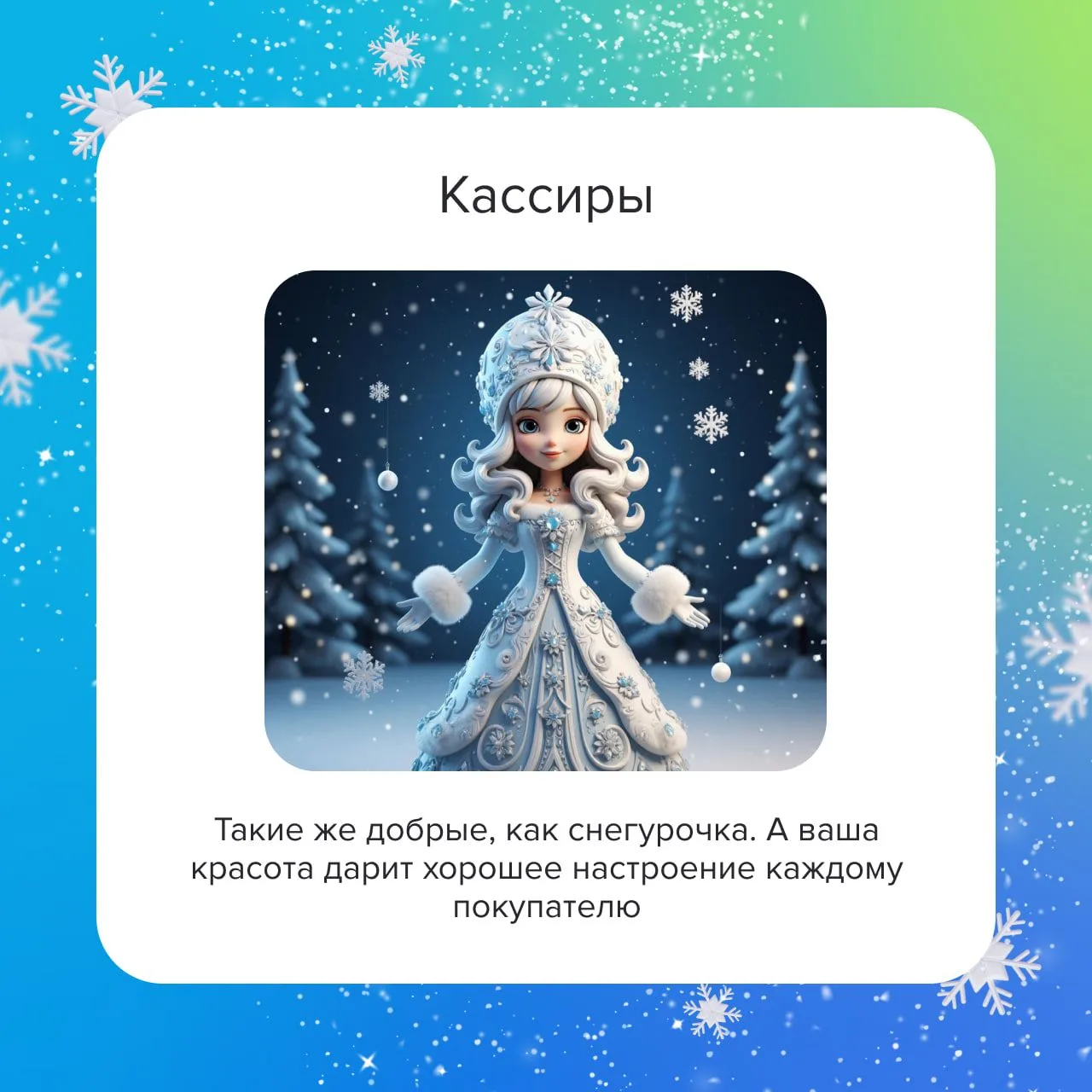 🛒Например, предложить помочь найти то, что они ищут, ответить на их вопросы или рассказать интересные факты о товарах, при этом обязательно выдерживать доброжелательный тон!