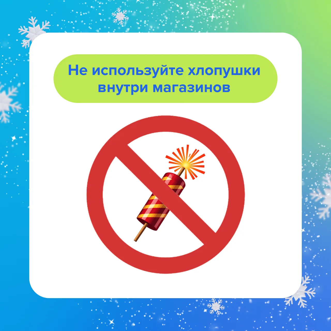 ➡️ Не используйте хлопушки и не поджигайте бенгальские огни внутри магазинов