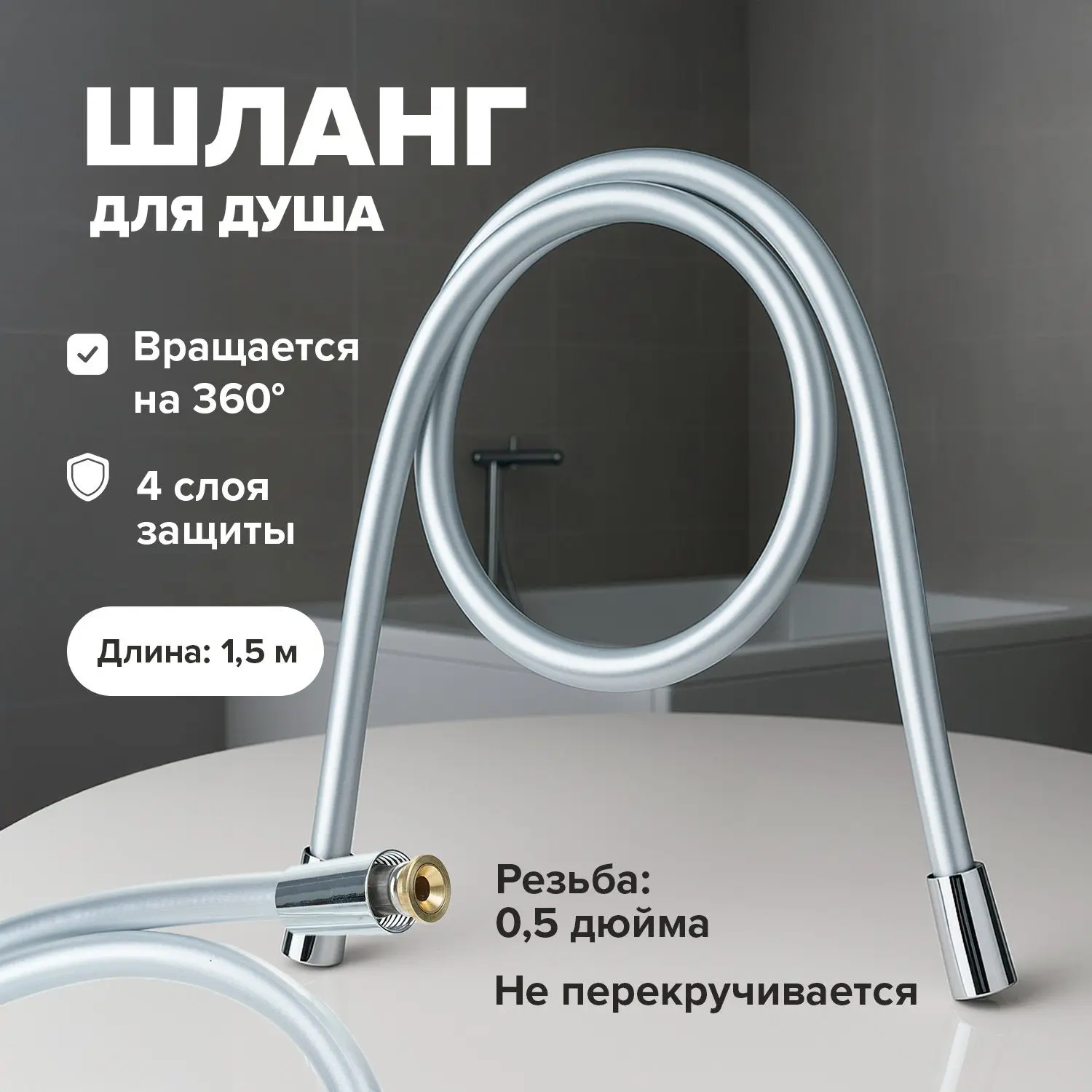 ✨ Шланг для душа длиной 1,5 м защищён от перегибов и вращается на 360°