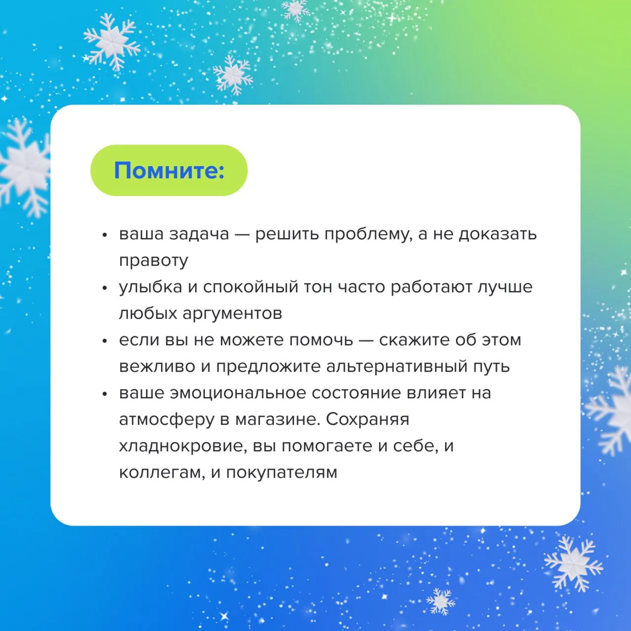🌟 Мы уверены, что все наши сотрудники это знают и понимают, а чтобы закрепить свои знания, мы предлагаем посмотреть видео-урок на тему «Правила общения с покупателями»: https://uc.fix-price.ru/mod/lesson/view.php?id=8022