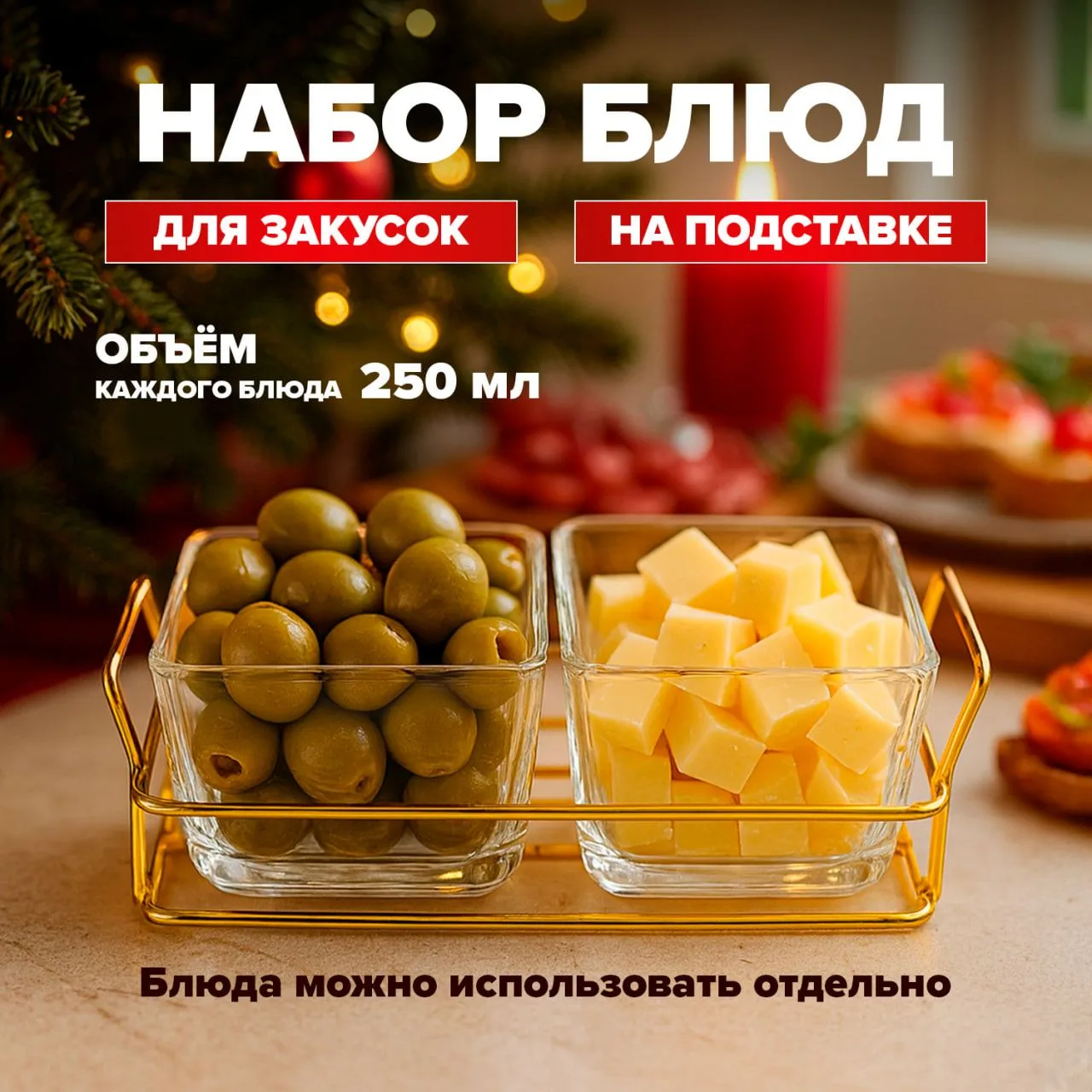 🍽 Набор блюд для закусок на подставке. Выдерживает температуру от 0 до +80 °С. Объём блюда: 250 мл