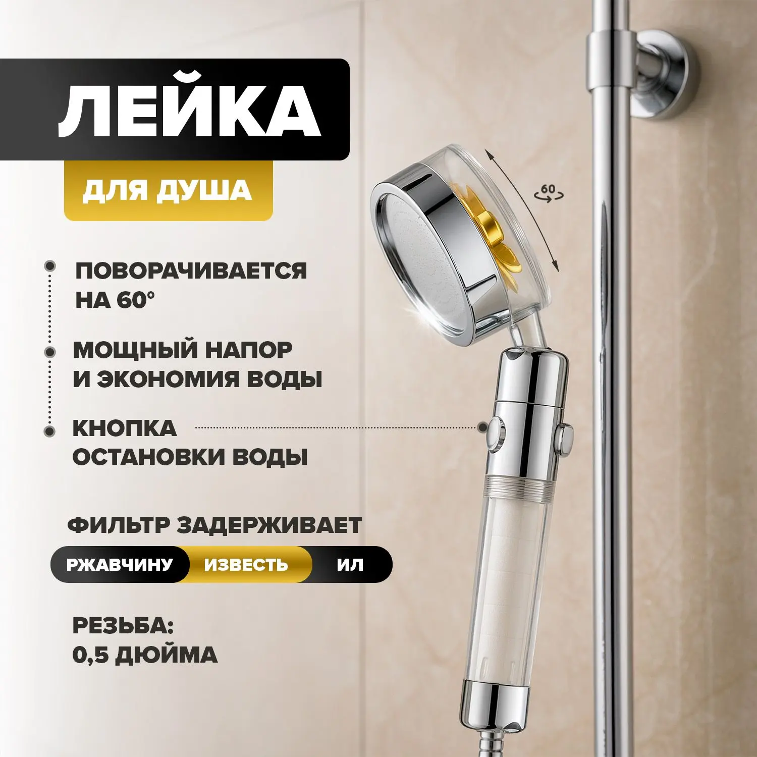 ✨ Лейка для душа с фильтром и кнопкой остановки воды поворачивается на 60°