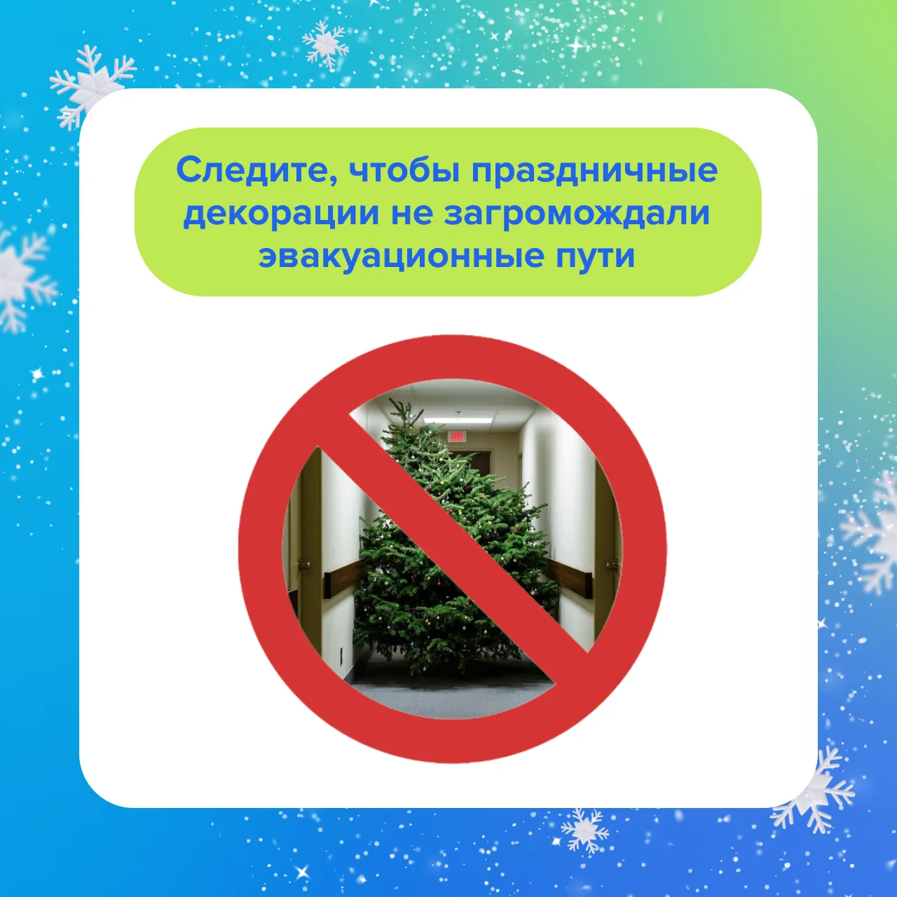 ➡️ Следите, чтобы праздничные декорации не загромождали эвакуационные пути и доступ к средствам пожаротушения