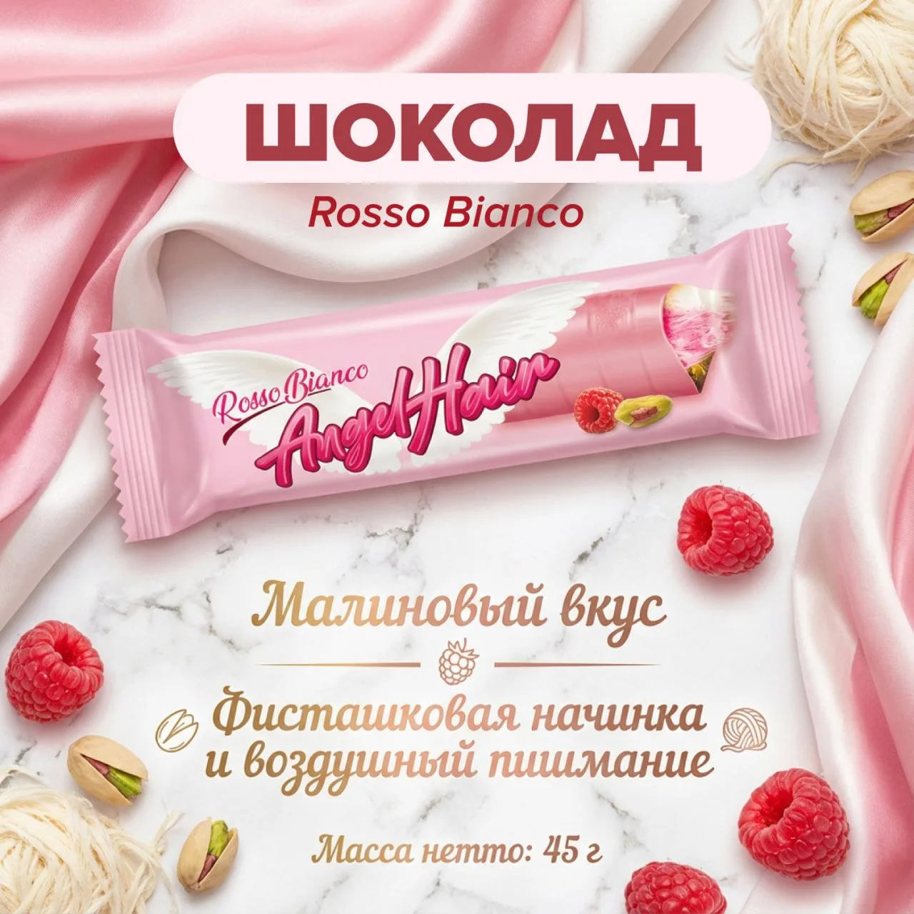 🍫 Белый шоколад «Angel hair» с малиновым вкусом, фисташковой начинкой и воздушным пишмание