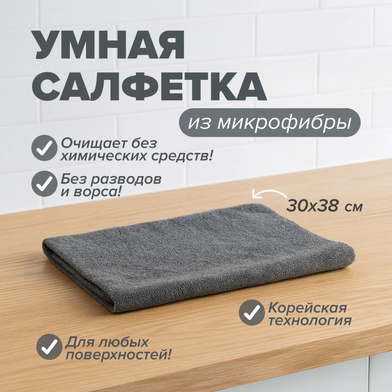 ✨ Тряпка для уборки «Умная салфетка» из микрофибры обеспечит быструю и лёгкую уборку без разводов и ворса. Размер: 30х38 см