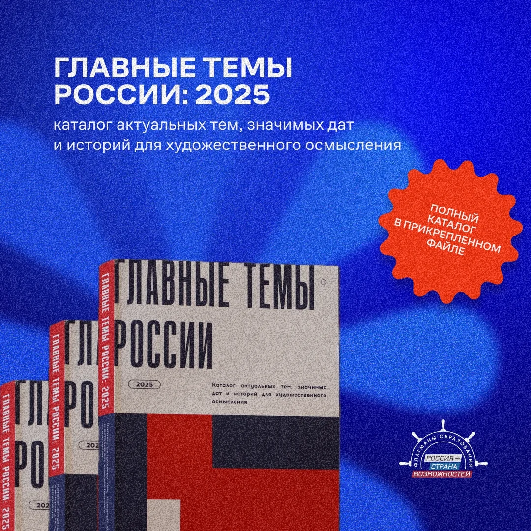 Ищете тему для классных часов, нового проекта, текста, песни или картины? Воспользуйтесь каталогом «Главные темы России: 2025»