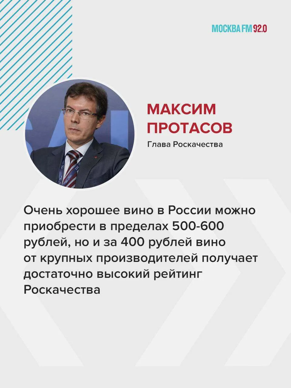 Об этом заявил глава Роскачества Максим Протасов: крупные отечественные производители, по его словам, научились делать отличное вино по достаточно низкой цене.
