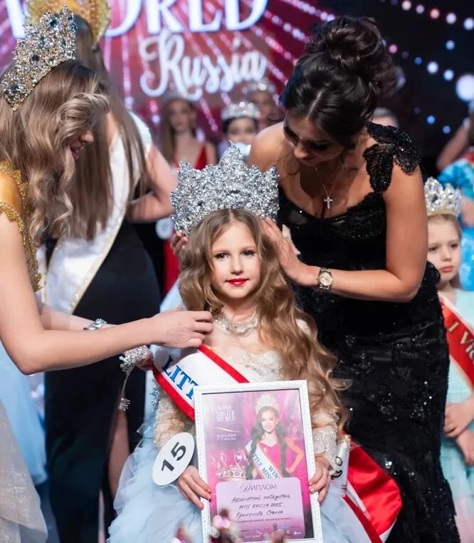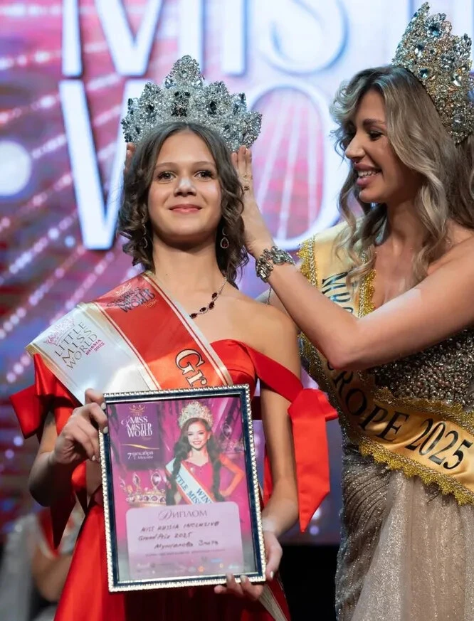 👑 7‑летняя Стелла Крикунова из Воронежа победила на конкурсе «Маленькие Мисс и Мистер Россия Мира 2025»