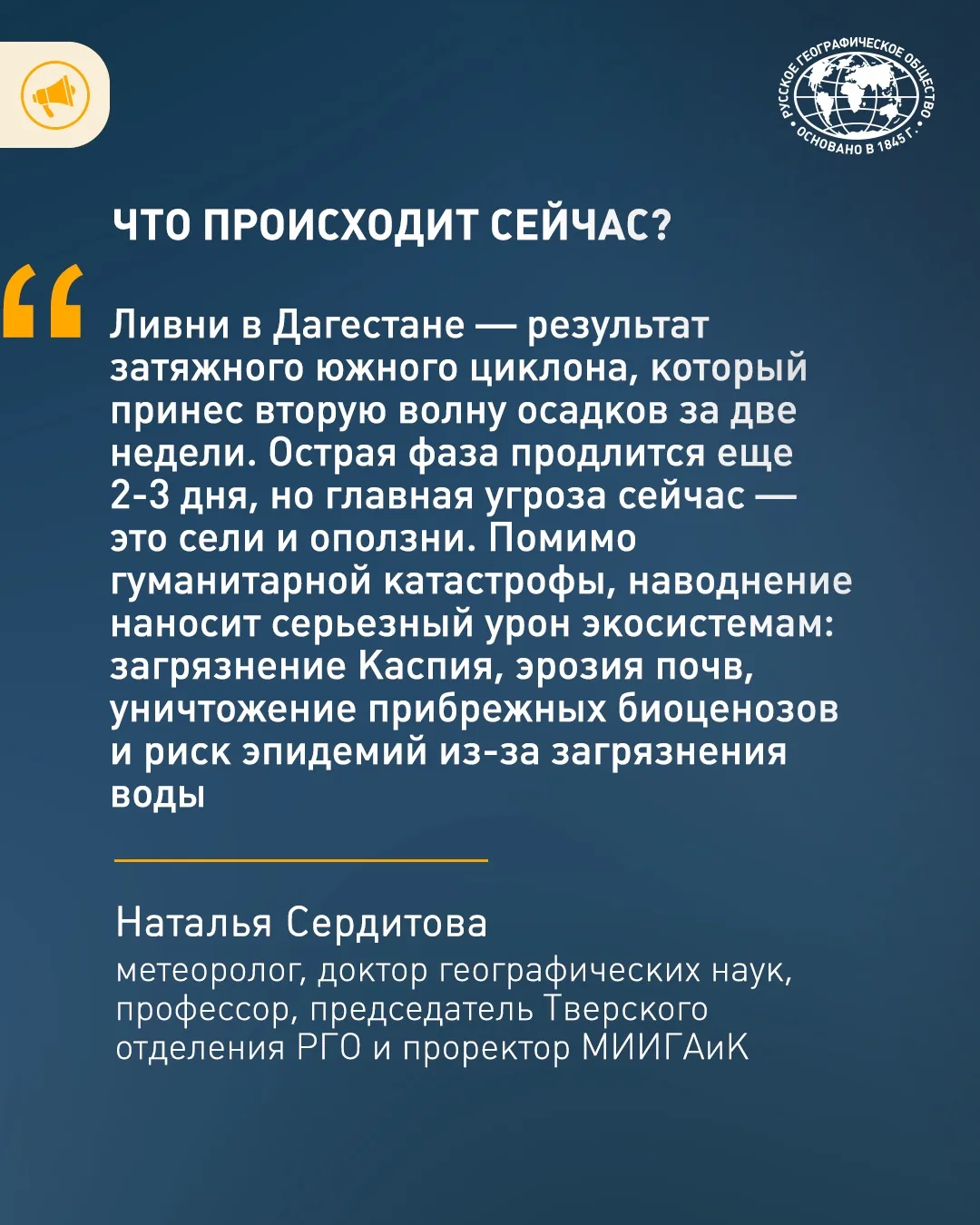 Какой погоды ждать Дагестану в ближайшие дни и как паводки могут повлиять на природу региона, мы спросили у эксперта РГО, метеоролога Натальи Сердитовой☝️