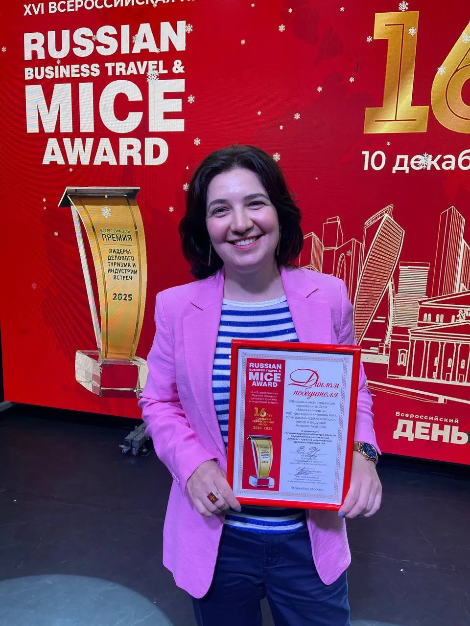 🏆 Журналист «Москва FM» Амалия Акопова стала победителем в номинации «Лучший журналист» на Всероссийской премии «Лидеры делового туризма и индустрии встреч»