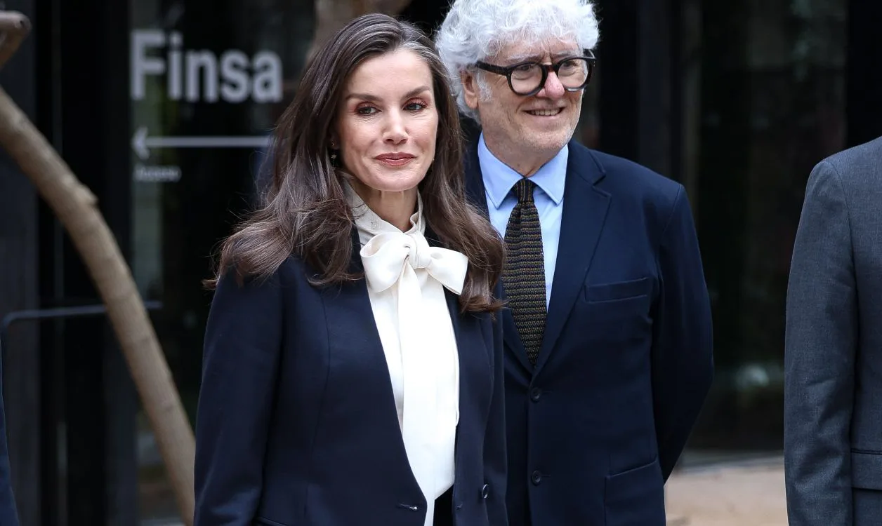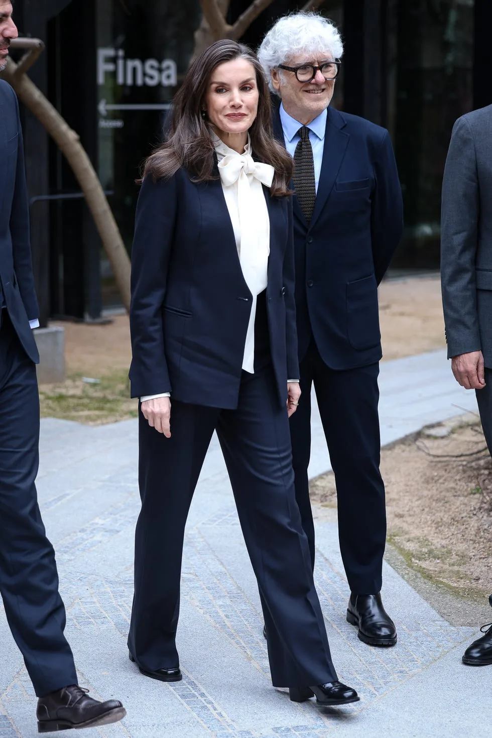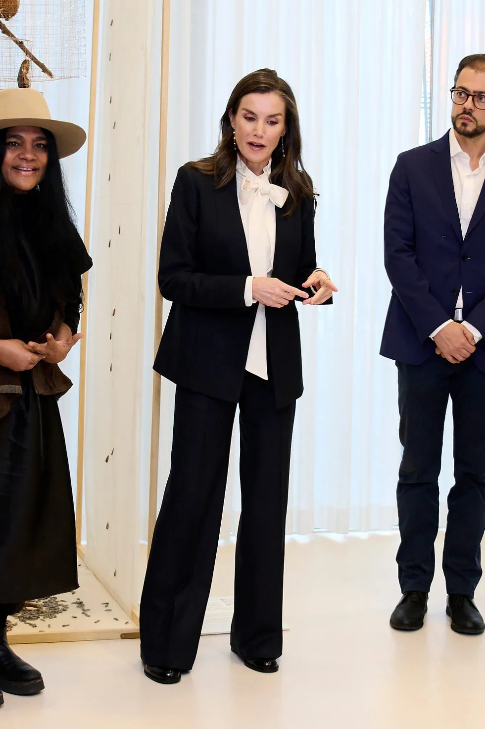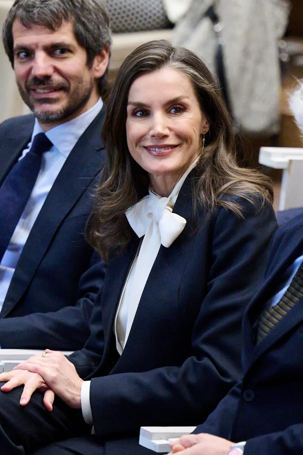 Королева Летиция сочетает блузку с бантом с нетрадиционным костюмом