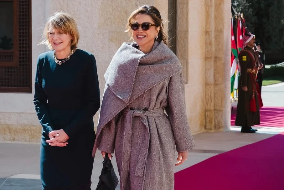 Королева Рания вместе с королем Абдаллой II приветствовала президента Германии Франка-Вальтера Штайнмайера и первую леди Эльке Бюденбендер во дворце Аль-Хусейния в Иордании. По этому случаю всегда элегантная королева выбрала удобный и в то же время изысканный наряд - она появилась в объемном пальто-накидке, доказав, что зимняя одежда может выглядеть действительно непринужденно.