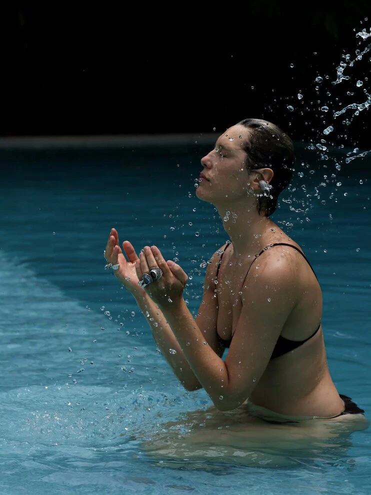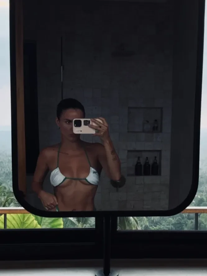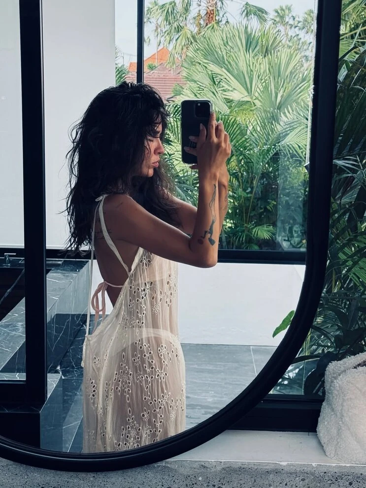 Океанский бриз и стильные образы - так можно описать фотосессию Zivert. Певица предстала в двух контрастных амплуа: в кружевном полупрозрачном платье, придающем образу нежность, и в белоснежном купальнике с высокой посадкой, подчёркивающем силуэт. Один из кадров, снятый со спины, изящно обыгрывает линии фигуры. В зеркале - экстремальное бикини, открывающее подтянутый пресс и деликатные татуировки. Завершают серию непринуждённые селфи без макияжа, передающие атмосферу расслабленного отдыха.